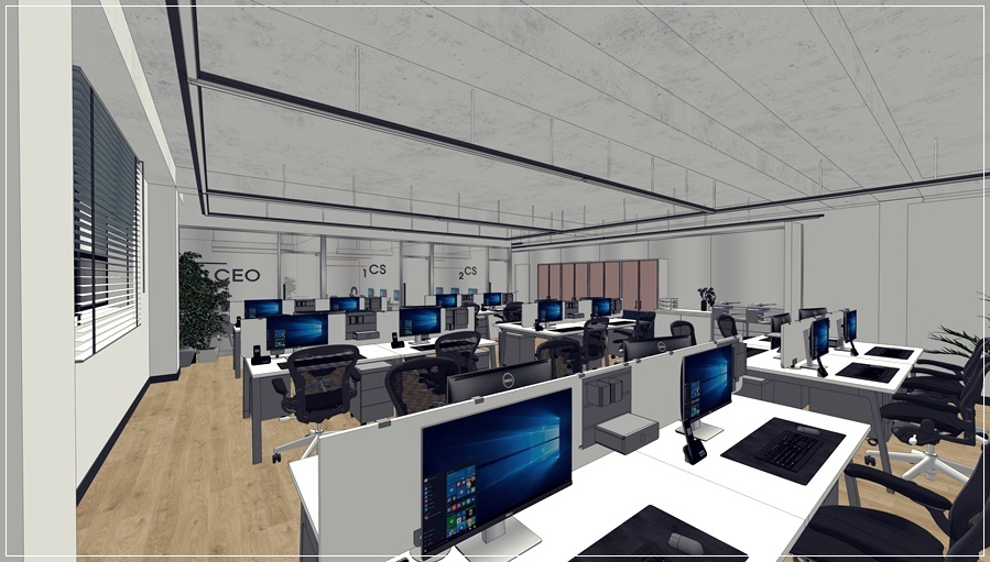 집중적인 업무 수행이 필요한 대표님과 CS1, CS2 팀은 개별적으로 공간을 배치해 업무 효율을 높였으며 유리 가벽으로 공간 분리를 명확하게 해 영역성을 부여했습니다. 대표실은 업무에 필요한 최소한의 면적과 인테리어를 적용했고 협소한 공간임을 감안해 수납가구 대신 선반을 계획해 실용적으로 사용할 수 있도록 했습니다. CS룸은 벽면으로 책상을 배치해 업무 집중도를 높였고 조명은 실용적인 크기로 계획해 에너지 절약을 실천했습니다.