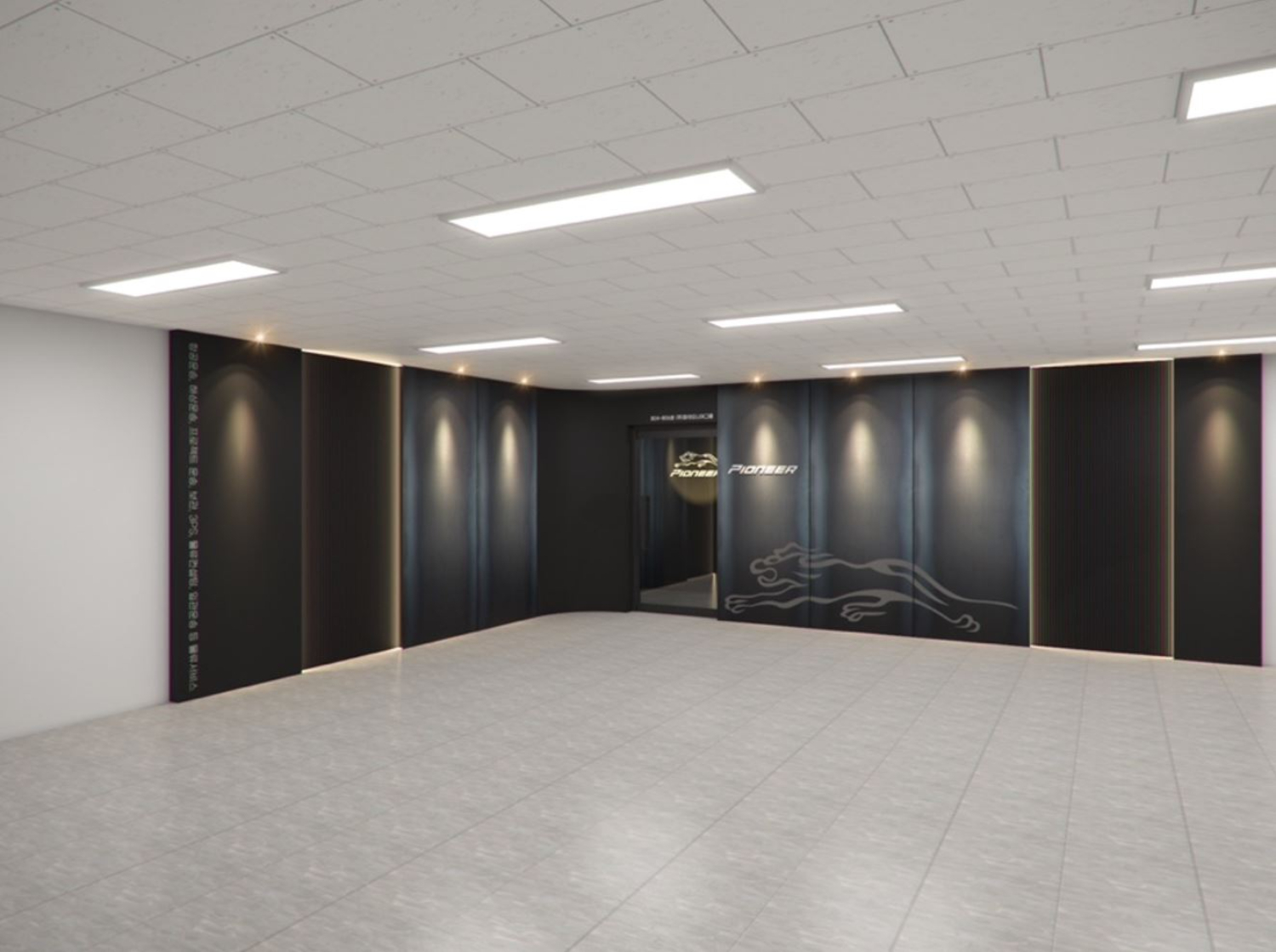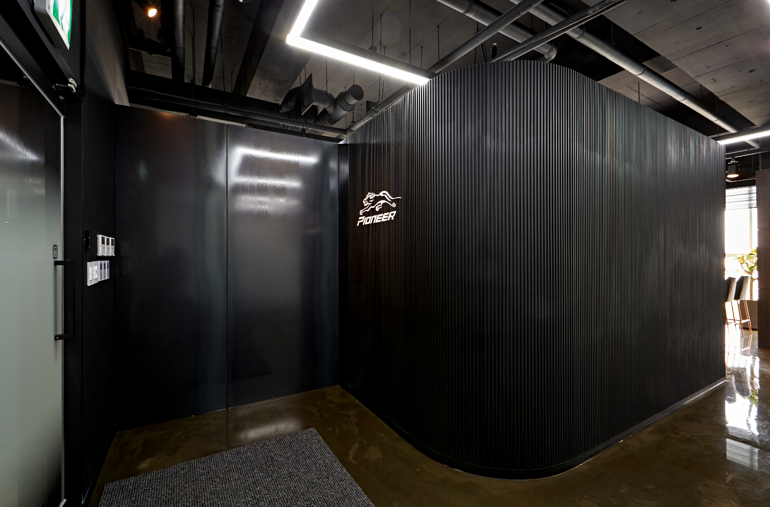 입구부터 평범하지 않은 이번 현장은 블랙으로 마감함과 동시에 전통문양같은 디자인이 새겨졌습니다. 천장에는 곳곳에 보조등이 설치되었으며 이중문으로 설계하여 템바보드 사이사이에서 흘러나오는 빛이 신비로운 분위기를 형성합니다.