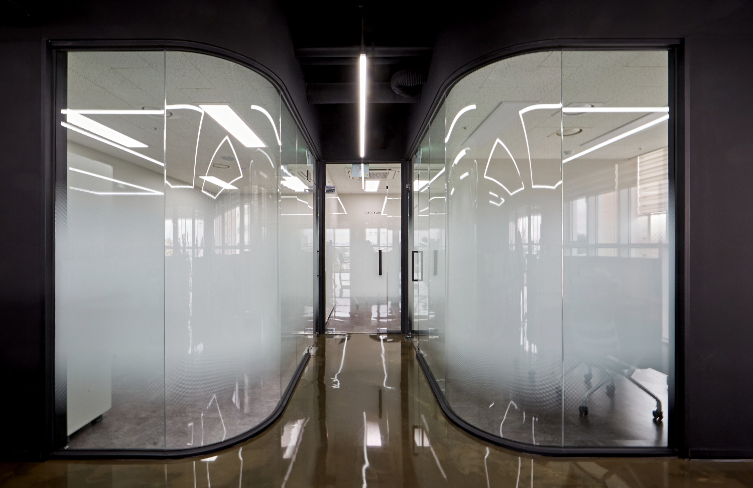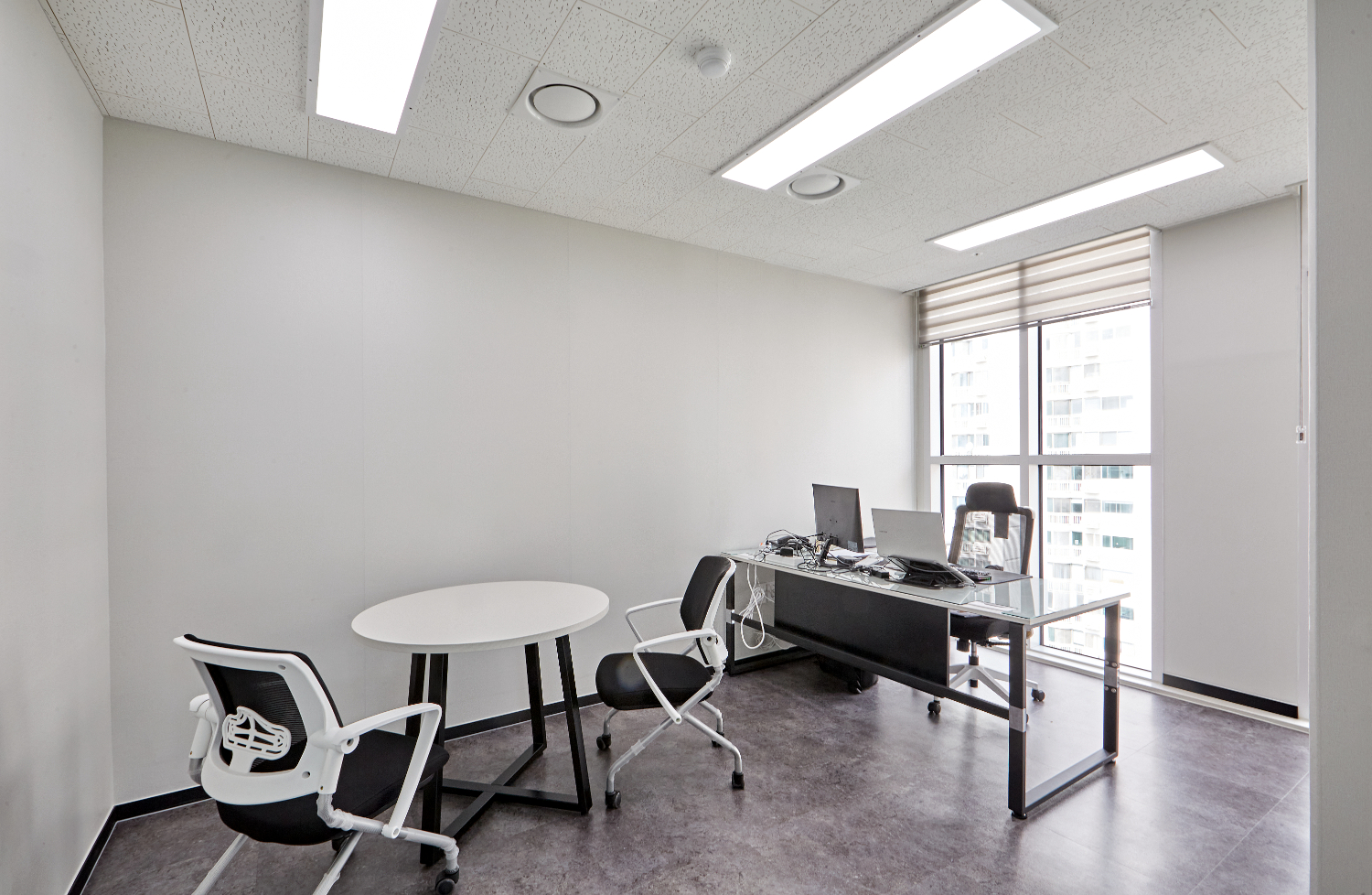 다른 룸들도 마찬가지로 업무하는데에 있어 필요로하는 최적의 동선을 구성하였습니다. 그리고 바닥은 그레이톤으로 하여서 세련된 분위기를 연출하면서 통창으로 되어 있는 창문마다 블라인드를 설치하여 빛의 양을 조절할 수 있게 하였습니다.