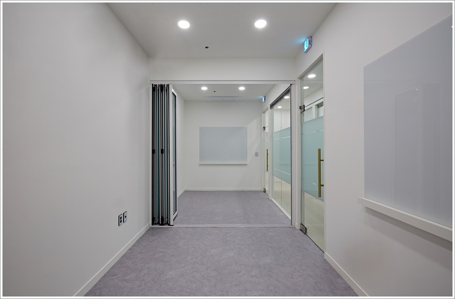 회의 공간에는 폴딩도어를 시공해 공간을 합치거나 나눠 사용할 수 있도록 해드렸는데요, 업무나 프로젝트에 따라 소규모로 회의를 하거나 많은 인원을 수용할 수 있어 고객님께서 매우 만족해 하신 공간이었습니다.