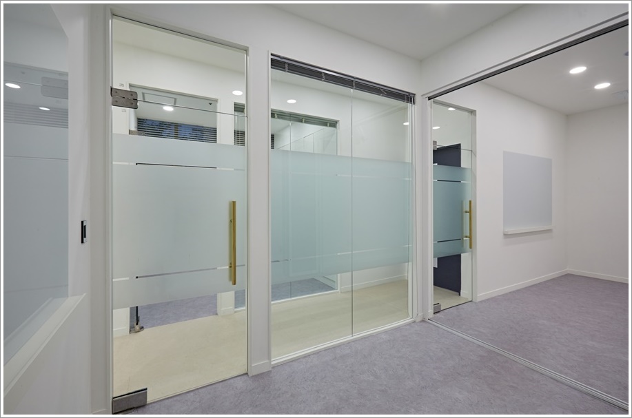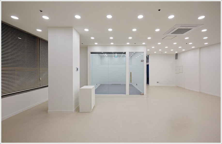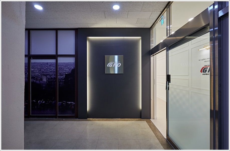 입구 파사드는 기업의 브랜드 이미지를 자연스럽게 표출할 수 있는 요소로 회사의 첫인상을 좌우하기 때문에 컨셉트와 디자인이 매우 중요합니다. 그렇기 때문에 저희 916디자인과 같이 디자인력을 갖춘 전문업체에 의뢰해 기업 이미지와 딱 맞는 입구 파사드를 시공해 도어는 자동 글래스문으로 시공해 진출입이 쉽도록 했고 안개 시트지를 시공해 내부의 직접적인 노출을 막았습니다.