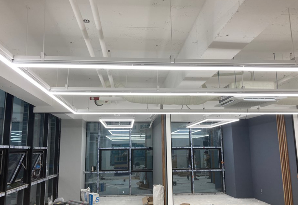 공용 사무공간은 노출천장을 활용해 층고를 확보했고 라인 형광등을 시공해 밝은 환경을 조성할 수 있도록 했습니다. 개별 공간과 공용 공간은 유리 가벽으로 시공해 공간을 넓어 보이게 했고 공용 공간은 가벽대신 파티션을 적용해 답답함을 해소했습니다.