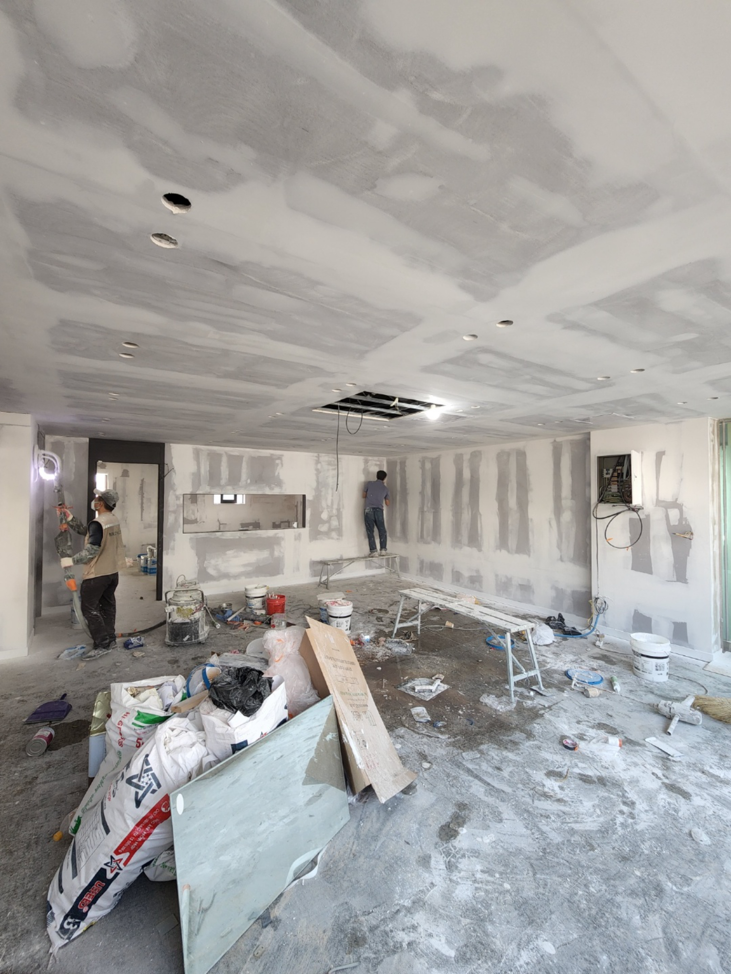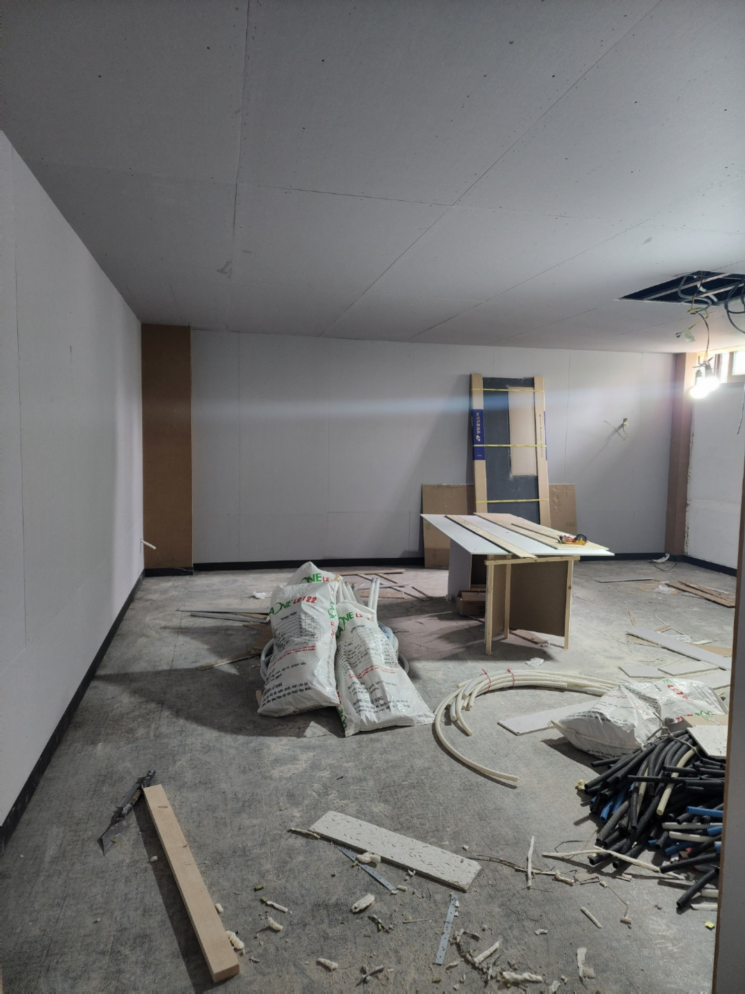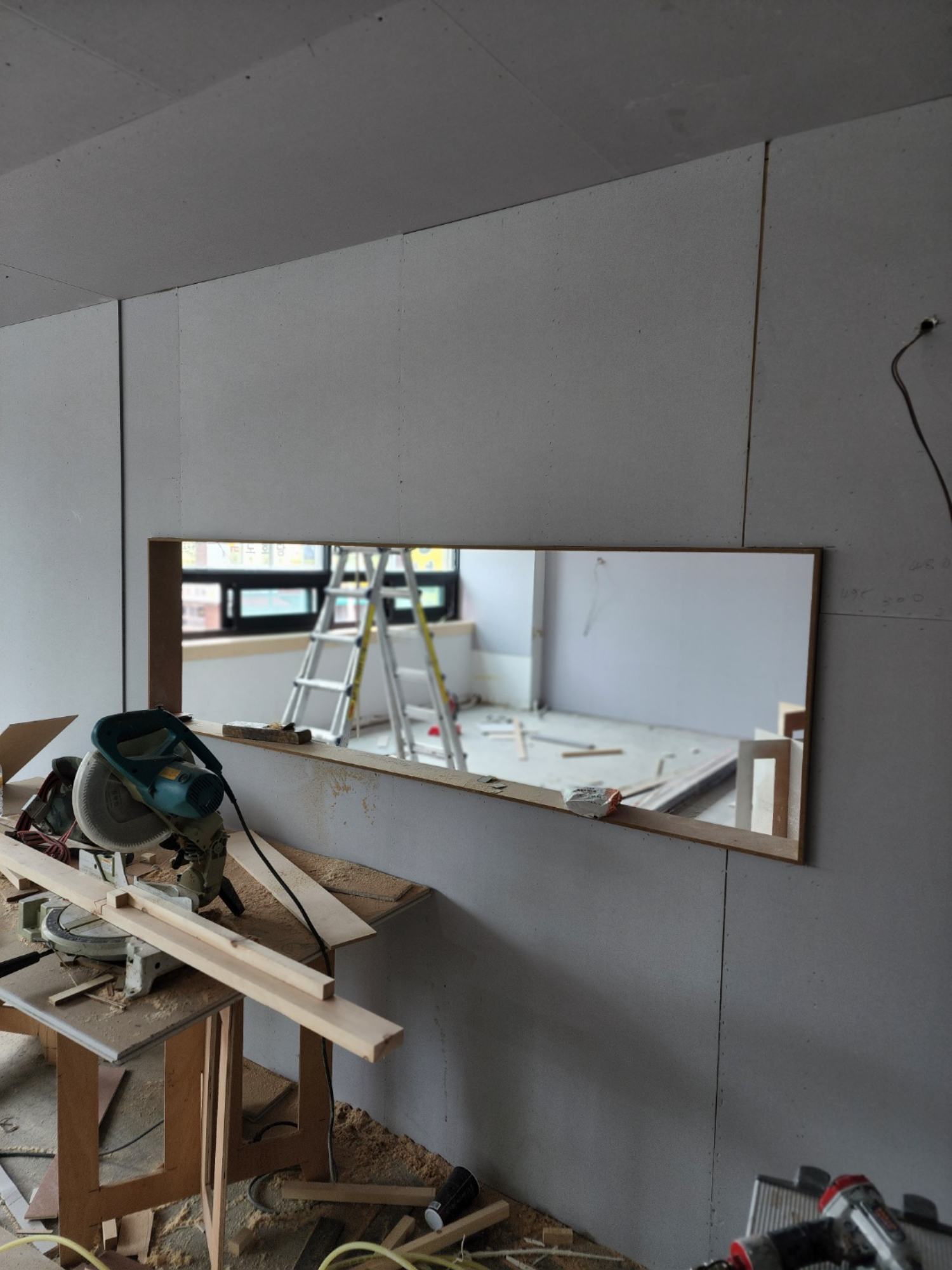 그리고 공간을 나누기 위한 가벽을 세울 목공 작업을 진행합니다. 필요한 부분은 타공으로 만들어주고 마감까지 섬세하게 진행하고 있습니다. 모든 공사의 뼈대가 되는 부분인만큼 공을 들이고 있습니다