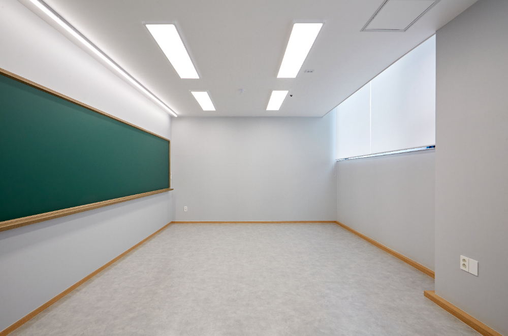 또한, 칠판 상단으로는 긴 바 조명을 설치해