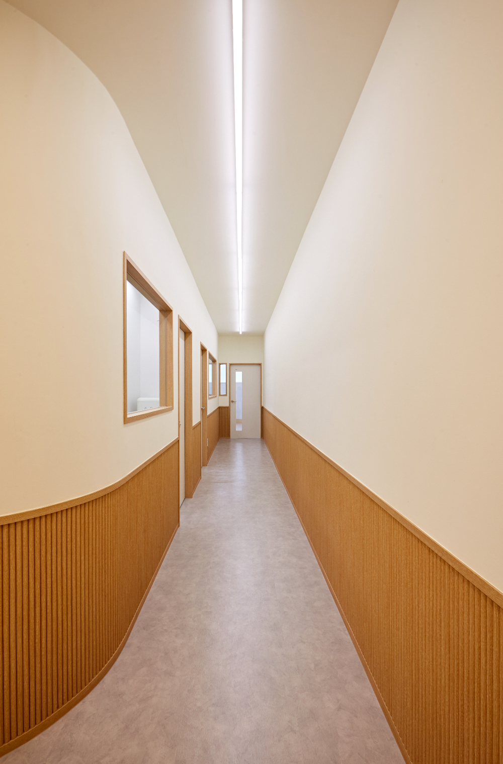 리센션은 복도 벽면 우드 템바보드 디자인과
