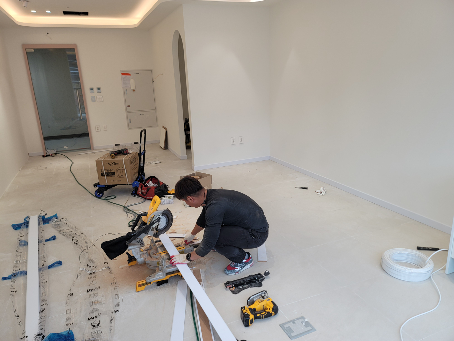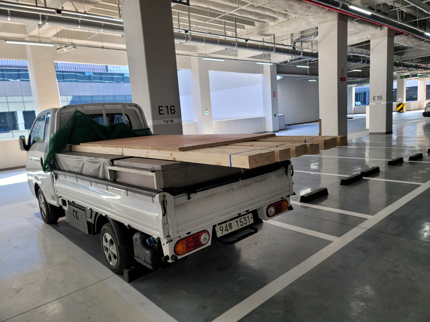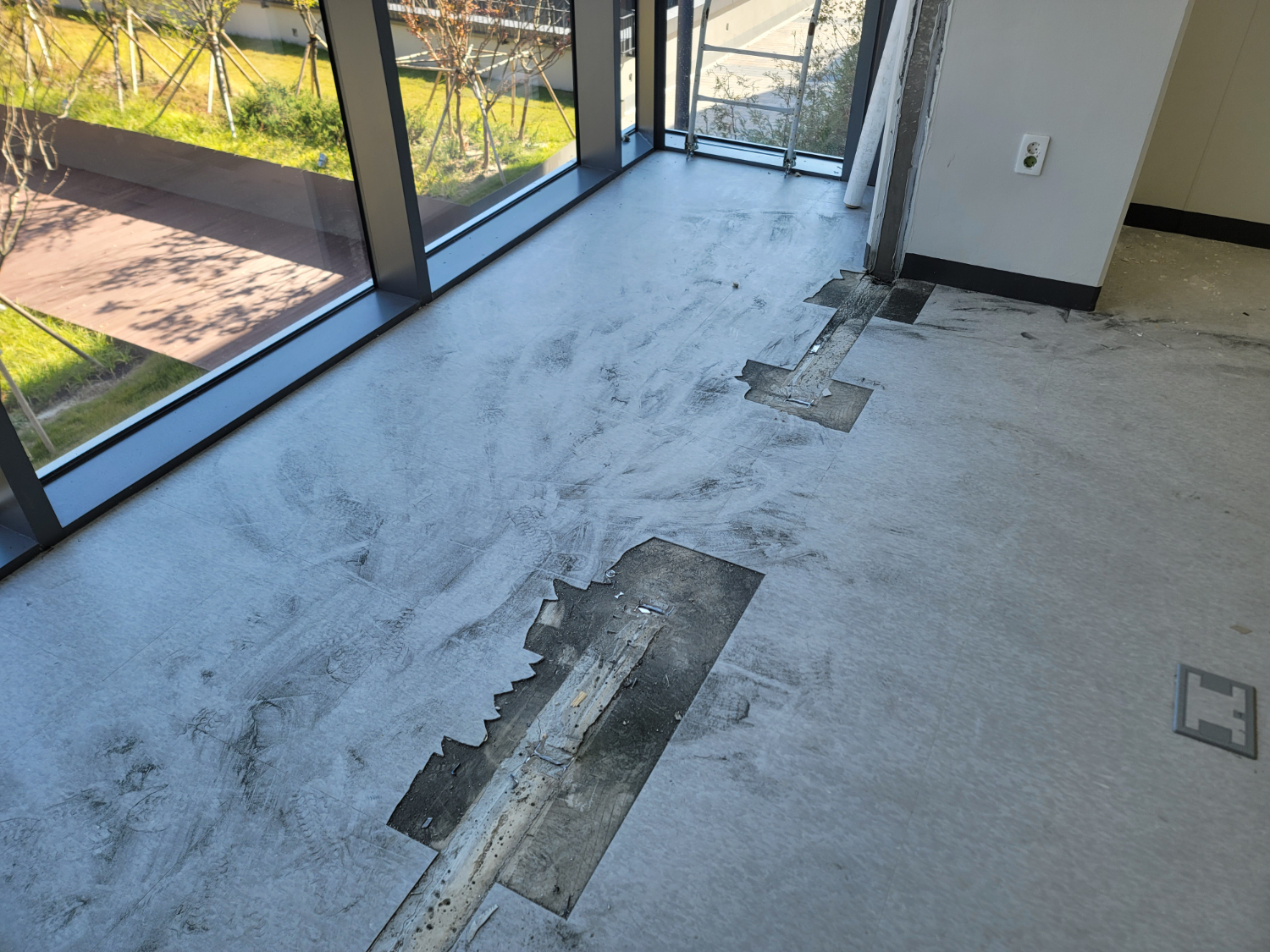 지식산업센터는 내부까지 주차장이 연결되어 있어서 보다 신속하게 필요한 자재를 이동 시키고 시공을 시작할 수 있었습니다. 외부 파사드까지 시공할 예정이었기 때문에 바닥 부분도 꼼꼼하게 보잉 작업을 진행 했습니다.