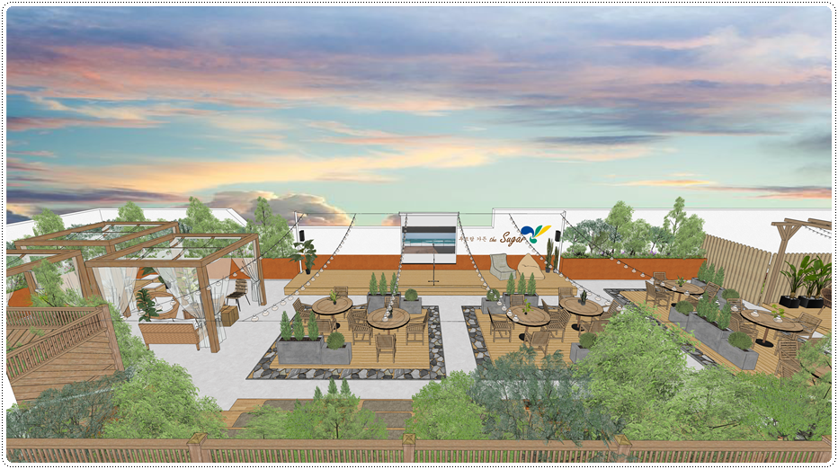 오늘은 구미 첨단의료기술타워 한라시그마밸리 사무실인테리어에 도움이 될만한 디자인 시안을 소개해드리겠습니다. 사무를 보는 공간보다는 행사를 진행하는 루프탑 공간으로 제안을 드렸던 디자인인데요, 최상층을 사용사용하면서 루프탑까지 사용하는 경우 카페테리아겸 행사장으로 사용한다면 시그니처 플레이스로 임팩트를 줄 수 있습니다.