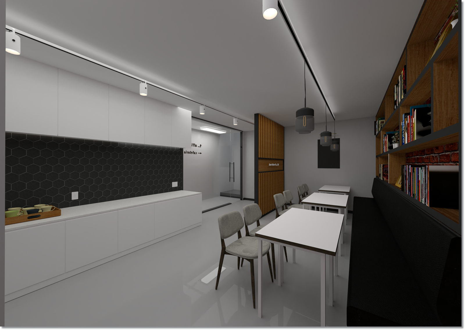 그래야 사용자의 입장에서 좋은 디자인설계를 확정할 수 있고 완공 후에 편리하게 사용할 수 있습니다. 군포 센트럴비즈파크 20평 30평 사무실인테리어, 소형평수 디자인 시안을 살펴보시면 사무실 공간은 카페테리아와 오피스로 나눠 구성이 됐고 그 배치가 어떻게 이뤄졌는지를 확인하실 수 있을 것입니다.