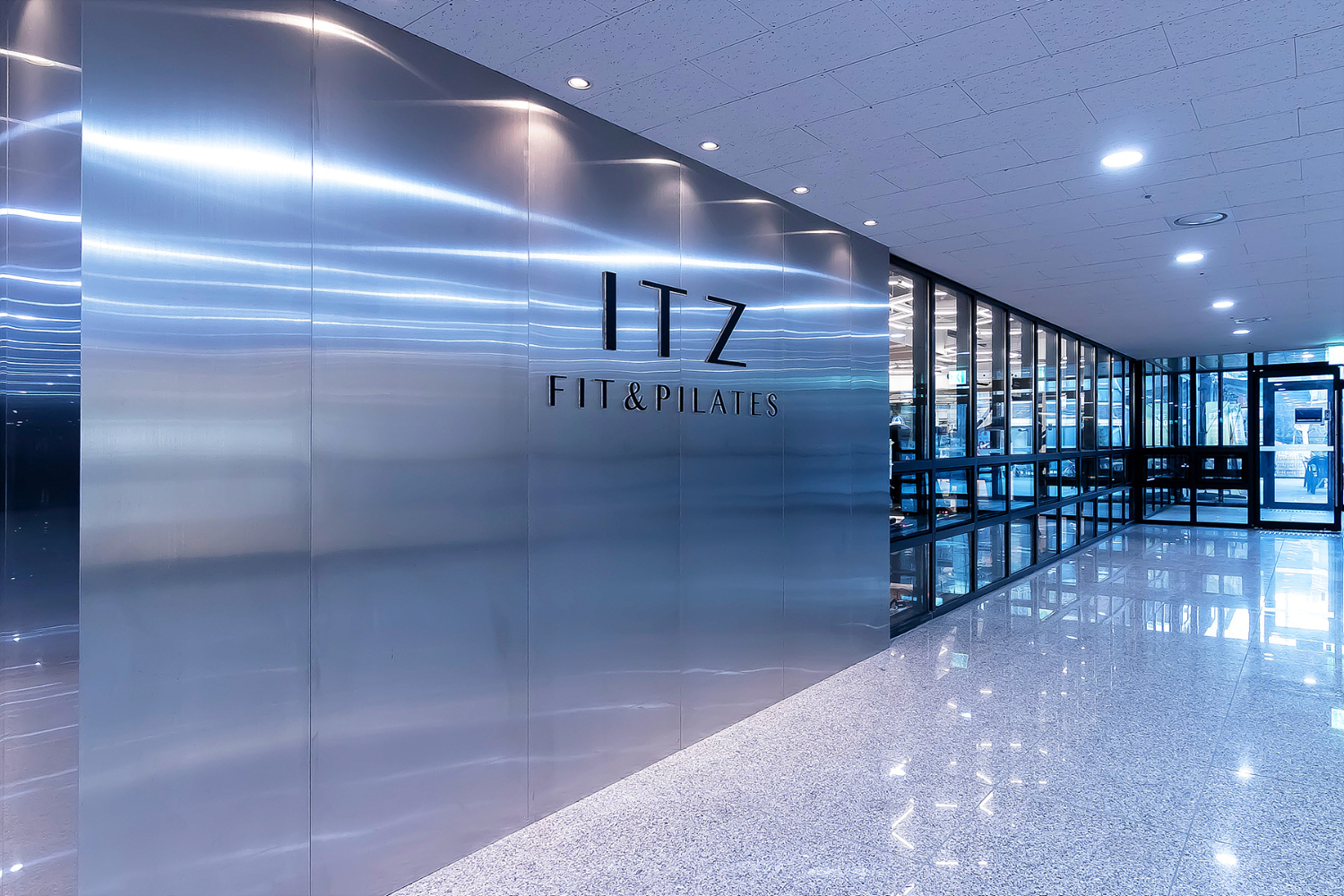 우선 입구 및 외관을 보시면 현대적인 느낌과 트렌디함이 느껴지실 텐데요. 기존의 블랙 프레임을 최대한 활용하여 도시적인 느낌을 살리기 위해 실버느낌이 나는 스테인리스 재질로 파사드를 설치했습니다. 또한 상부의 조명이 비치면서 은은한 색감을 자랑하고 심플한 로고로 미니멀한 연출을 하였습니다.