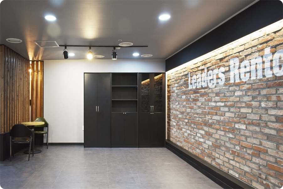 이번 김포 g타워 렌트카 사무실 인테리어, 고급스러운 블랙우드 포인트 인테리어 현장의 경우 조명 연출로 공간의 분위기를 한층 더 높였으며 그로 인해 세련되고 고급스러운 멋진 공간으로 완성된 모습 확인해 보실 수 있습니다.