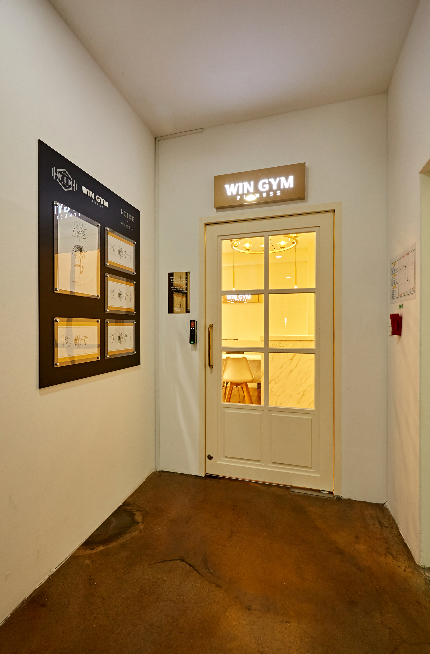 건물에 들어서면 보이는 입구는 클래식하고 미니멀한 디자인에서 착안하였습니다. 격자무늬 도어는 고급스러운 느낌을 주기도하고 손잡이와 옆의 안내판 그리고 간판까지 모두 골드 컬러로 통일하면서 럭셔리한 무드를 더했습니다.
