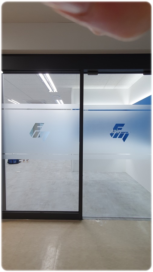 기업의 철학과 비전을 시트지로 제작해 시공하면 회사의 신뢰도와 정체성이 높아질 수 있고 회사명과 로고를 시공하면 가독성이 높아지며 각 공간에 대한 키맵을 작게 시공하면 방문객의 편의를 높일 수 있습니다. 이번 현장의 내부 파사드는 창고와 공용 업무 공간을 분리하는 역할도 함께 하고 있습니다.