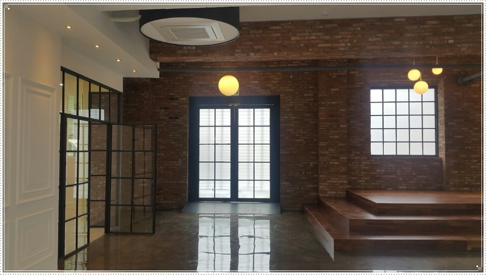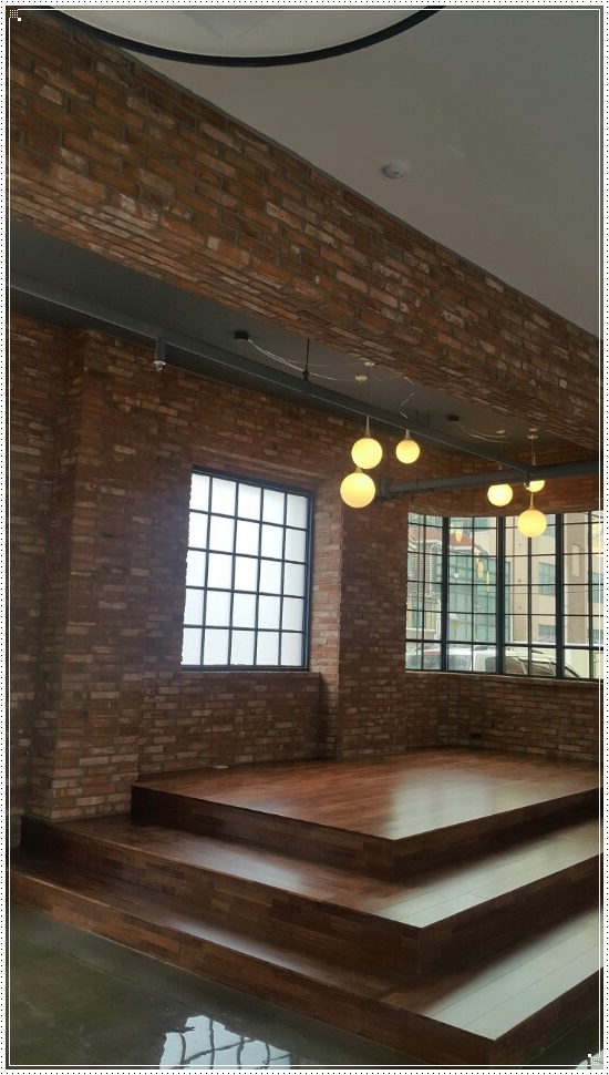 특히, 자연광이 잘 비치는 창가 공간은 아침부터 저녁까지 시간에 따른 빛의 변화를 활용할 수 있기 때문에 열고 닫을 수 있는 개폐 및 탈부착 창살을 시공해 다양한 아름다움을 연출할 수 있도록 했습니다. 벽면은 자연광과 잘 어울리면서 빈티지한 느낌이 충만한 파벽돌로 마감하고 계단식 포토존을 설피해 색다른 느낌을 낼 수 있게 했고 자연광과 가장 비슷한 색감의 조명을 팬던트형으로 시공했습니다.