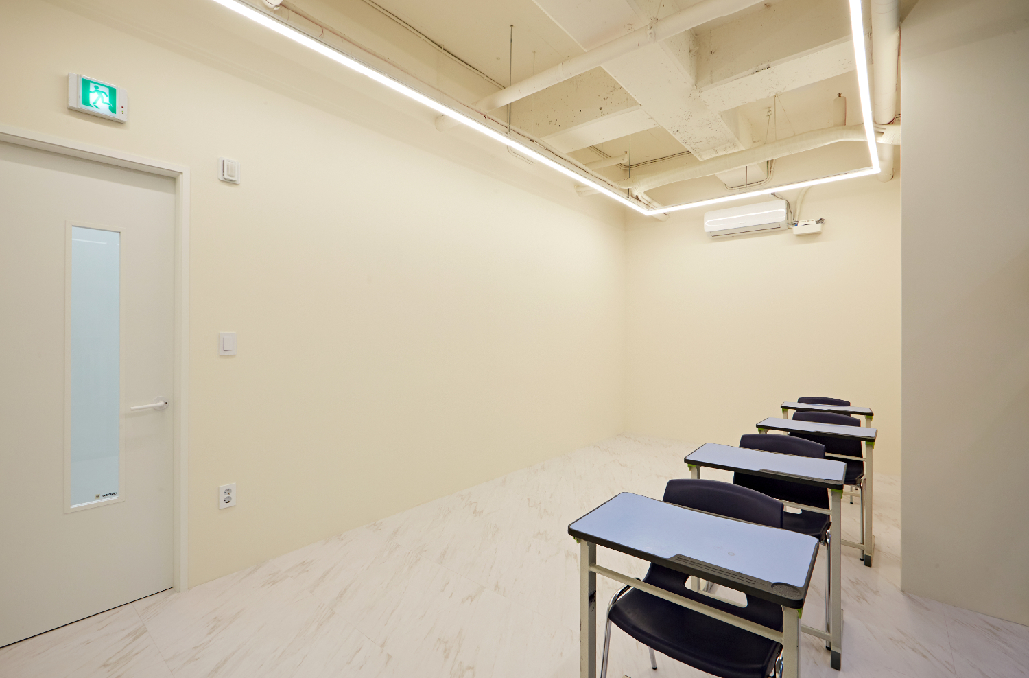 또한 대규모로 이뤄지는 수업 공간이 아니라 소규모로 수업하는 곳이었던만큼 서로 소통이 잘 될 수 있는 배치를 고려하였으며 누구하나 뒤쳐지지 않도록 선생님이 모두를 신경쓸 수 있는 곳으로 인테리어 하였습니다.