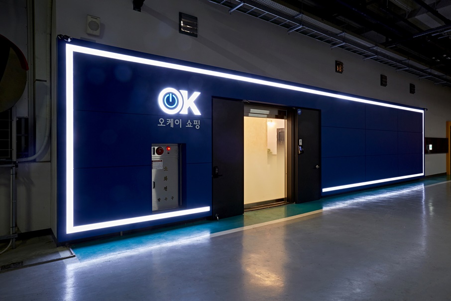 입구에서 들어오면, 바로 보이게 되는 거울과 회사 로고입니다. 가정 내에서 외출을 나갈 경우, 일반적으로 현관앞에 거울을 배치하시는 경우들이 굉장히 많습니다. 나가기 전, 옷 매무새를 가다듬고, 신경을 쓰고 나가야하기 때문에, 최종적으로 거울을 한번 볼텐데요,