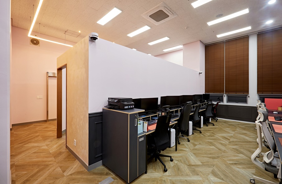 실제로 처음 사무실에 들어가는 부분에 있어서 굉장히 많은 직장인들이 달가워하지 않을 것입니다. 하지만, 출근을 하는 부분에서 이러한 시각을 사로잡는 요소가 있다면, 사무실의 공간이 굉장히 기대가 될 수 밖에 없을 것 같은데요, 최대한 밝은 분위기의 사무실을 원하셨기 때문에, 그에 따라 만족감을 드릴 수 있었습니다.