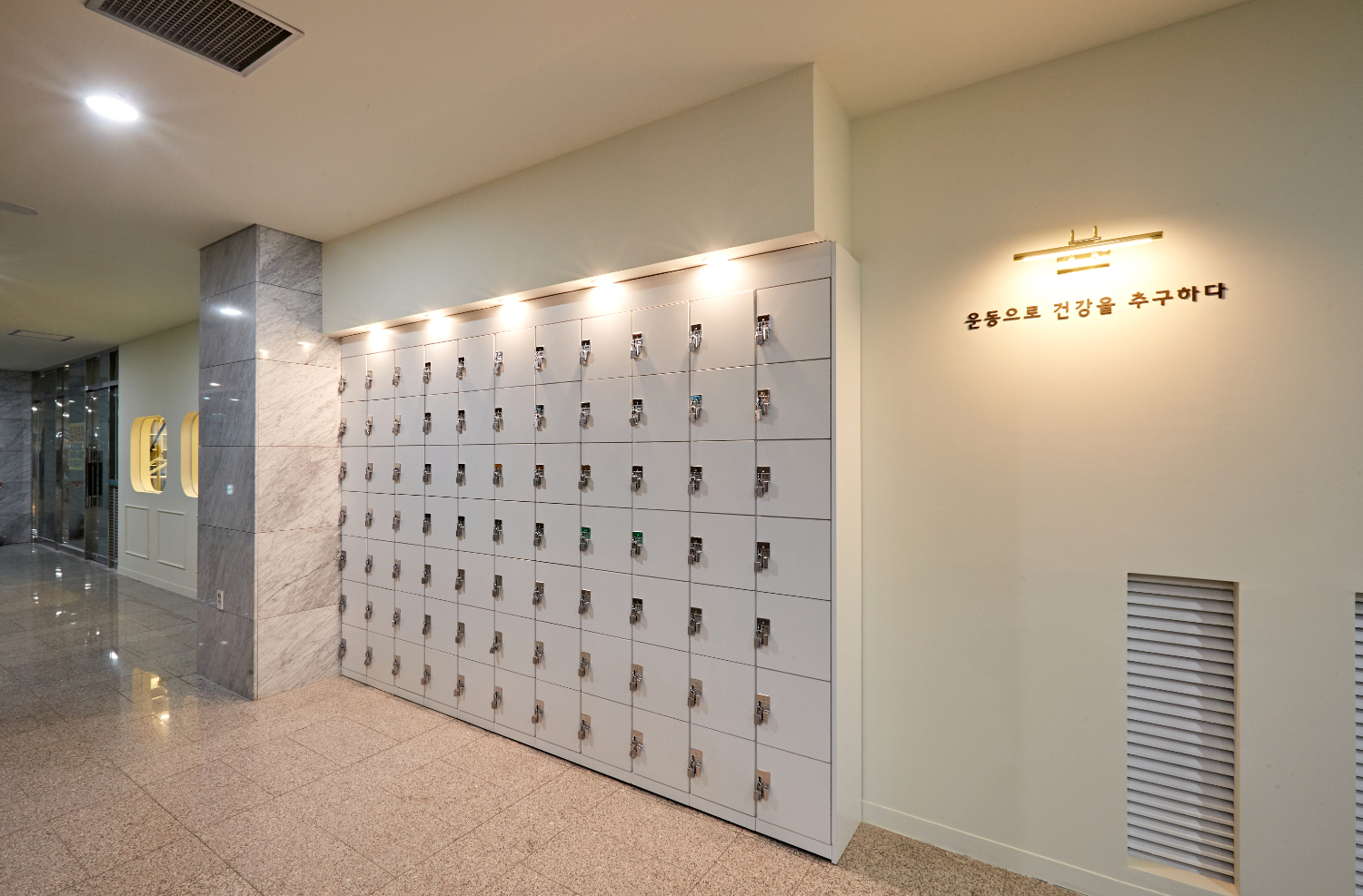 카운터의 뒷편에는 동탄 기흥 여주 헬스장인테리어에서 빼놓을 수 없는 컨설팅룸이 있었습니다. 고객의 현재 상태를 체크해주는 인바디 기계와 아치형으로 되어 있는 룸으로 들어가면, 프라이빗한 상담실이 마련되어 있고요. 옆에는 고객들이 편하게 운동복을 가져가실 수 있도록 사이즈별로 원형 타공 수납함을 만들었습니다. 그리고 바로 반납할 수 있도록하여 동선을 최소화하여 효율적인 면을 강조하였습니다.