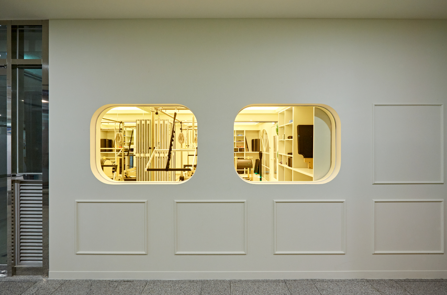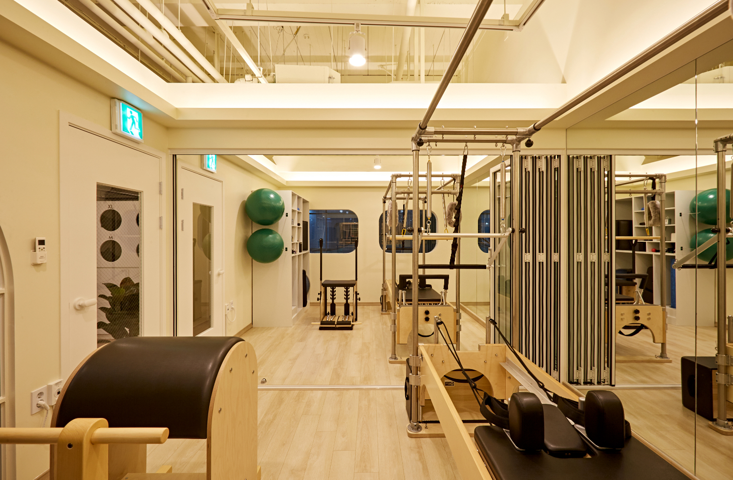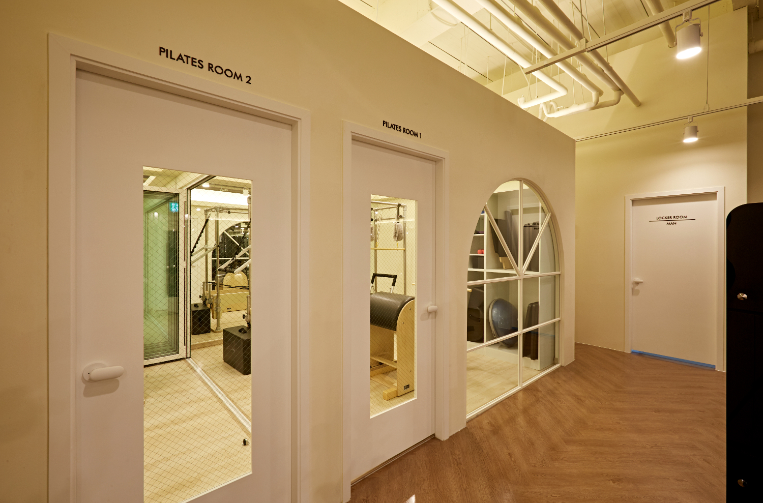 필라테스룸은 개별적으로 사용하는 공간이기에 가벽을세워 공간을 분리하였는데요.