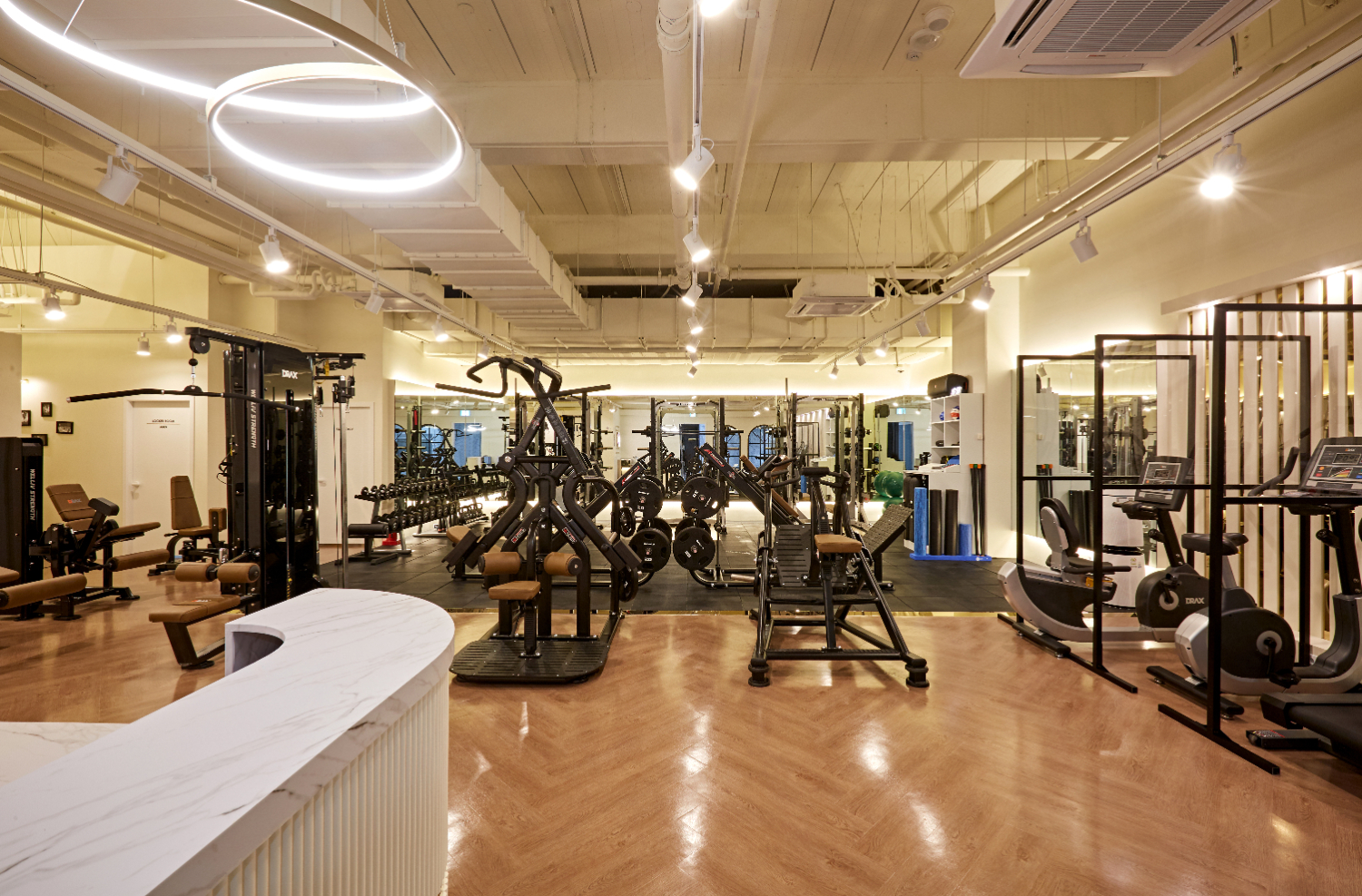 동탄 기흥 여주 헬스장인테리어 아치형 도어와 곡선 마감으로 부드러운 분위기 연출