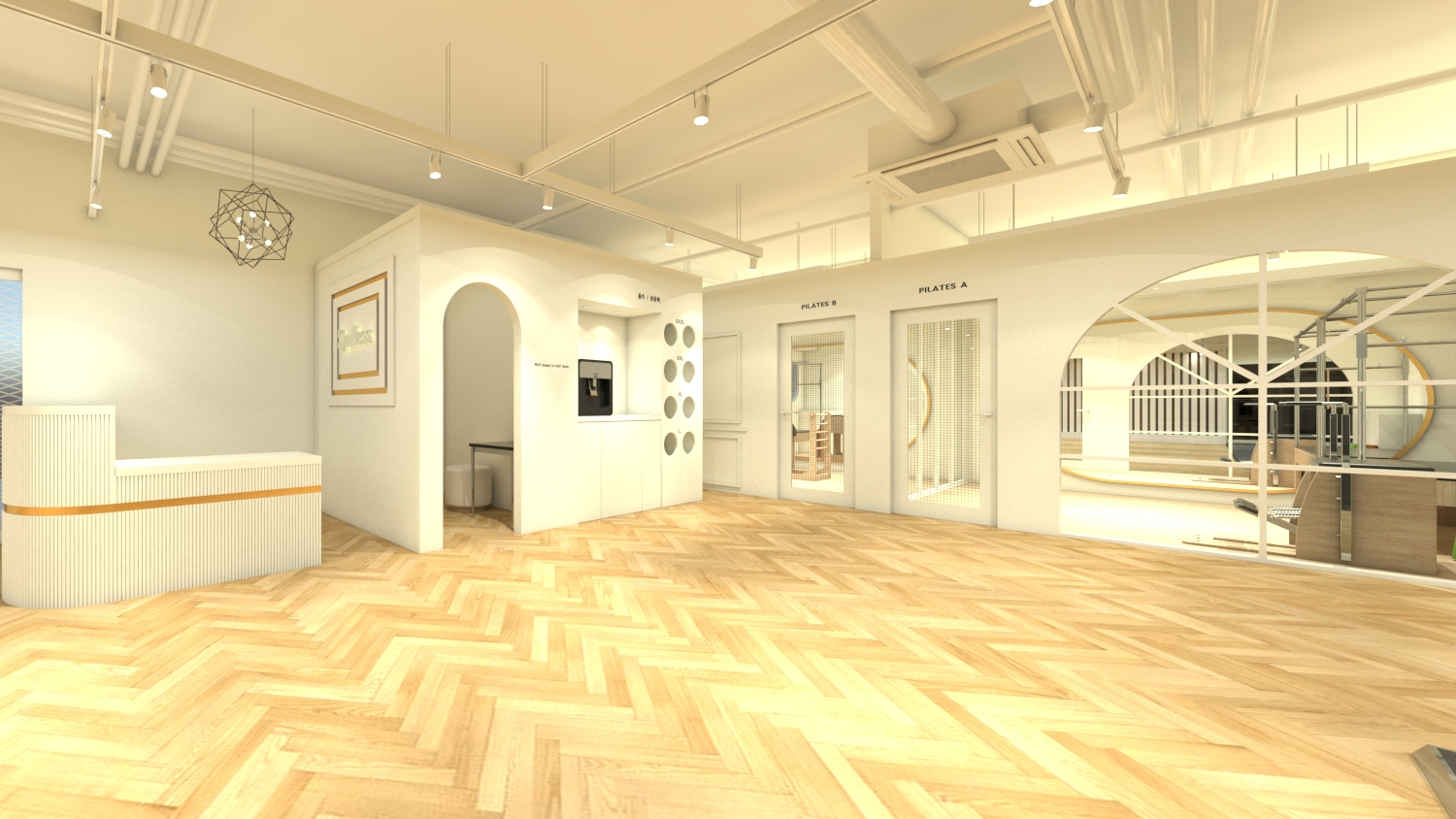 3D 이미지로 구현해낸 동탄 기흥 여주 헬스장인테리어입니다. 마치 실제와 같은 느낌을 내고 있으며, 이대로 결과물도 거의 흡사하게 시공된다고 봐주셔도 손색이 없는데요. 전체적으로 화이트와 원목으로 이루어진 느낌이며, 곳곳에 골드 컬러의 포인트가 들어가고 있습니다.