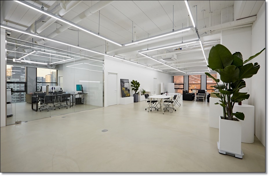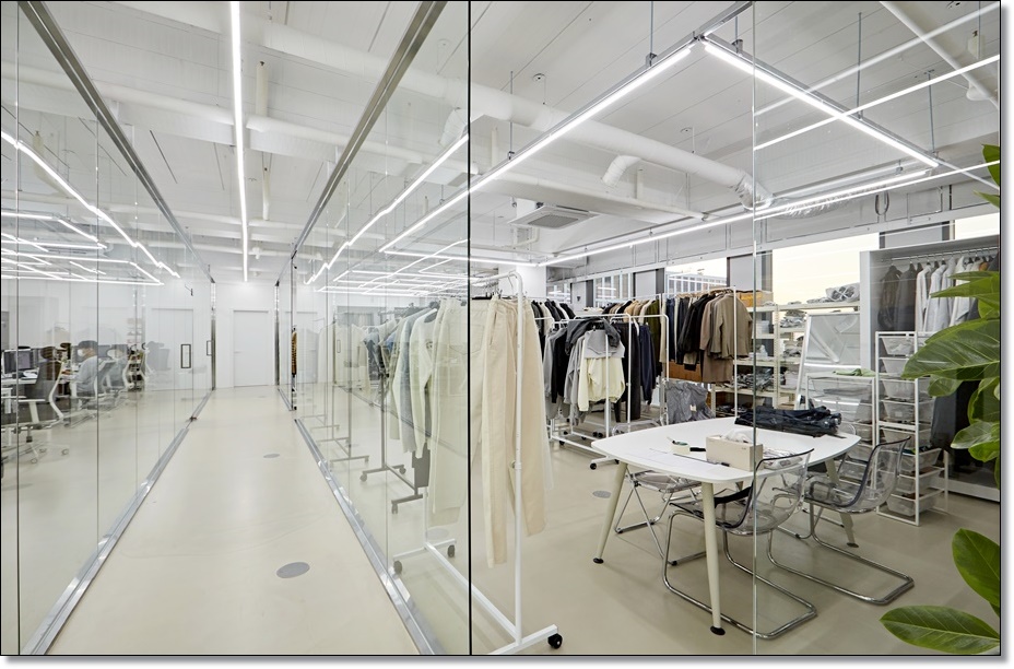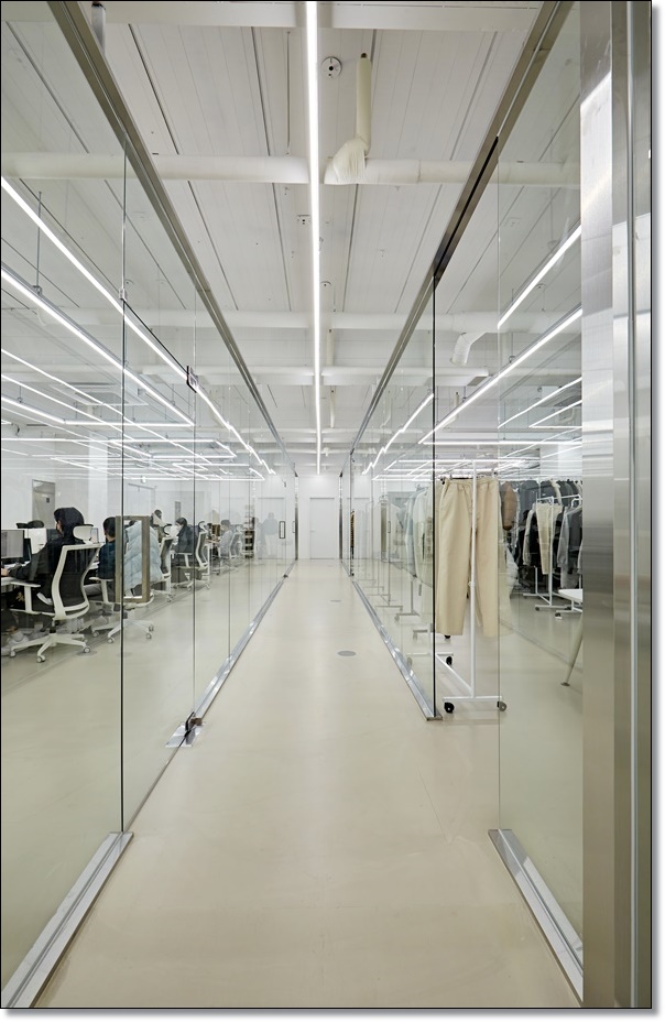 전체적으로 노출천장으로 시공하고 화이트로 마감해 공간이 넓어 보이게 했으며 바닥은 베이지톤으로 마감해 밸런스를 맞추면서 안정감을 주었습니다. 천장 조명은 배관을 따라 라인조명을 시공함으로써 깔끔하고 감각적인 요소가 되도록 했고 공간은 유리 가벽으로 분리해 개방적이면서 독립성을 확보햇습니다.
