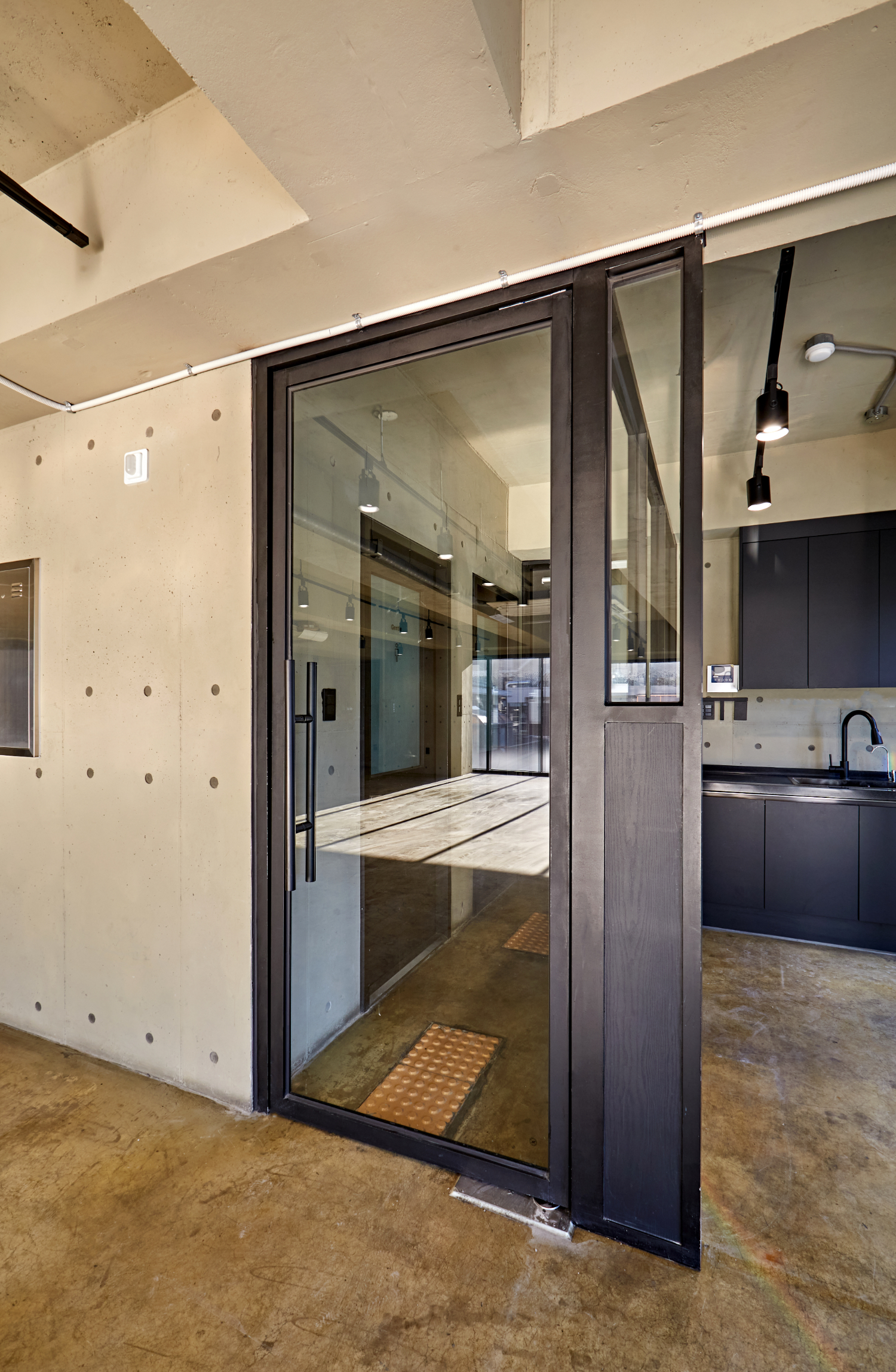 입구의 경우 노출 콘크리트 컨셉 사이에