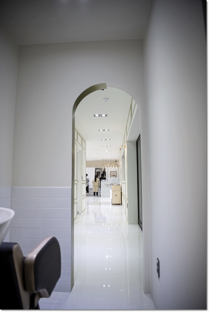 전체적으로 화이트톤의 색감을 이용해서 중간마다 금색으로 중요포인트를 준 것이 이번 인테리어 시공의 핵심입니다 지금 사진과 같이 저희는 클라이언트의 요구사항에 맞춰서 고급스러운 미용실 인테리어를 해드렸습니다.