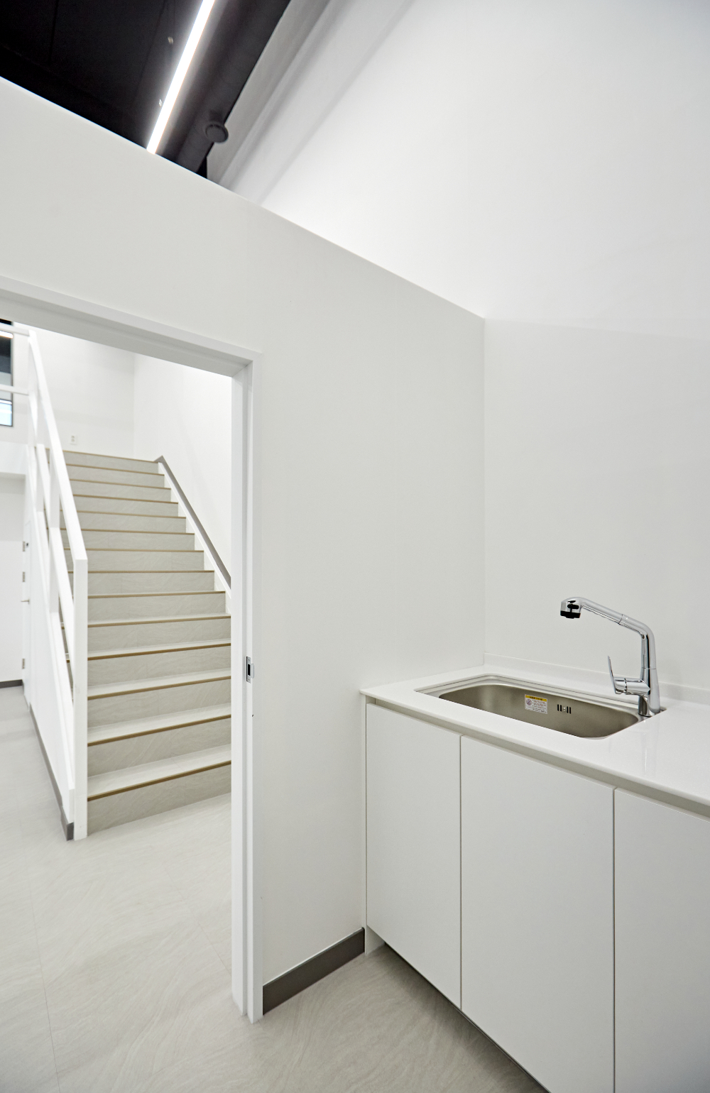 깔끔한 화이트와 고급스러운 질감의 바닥