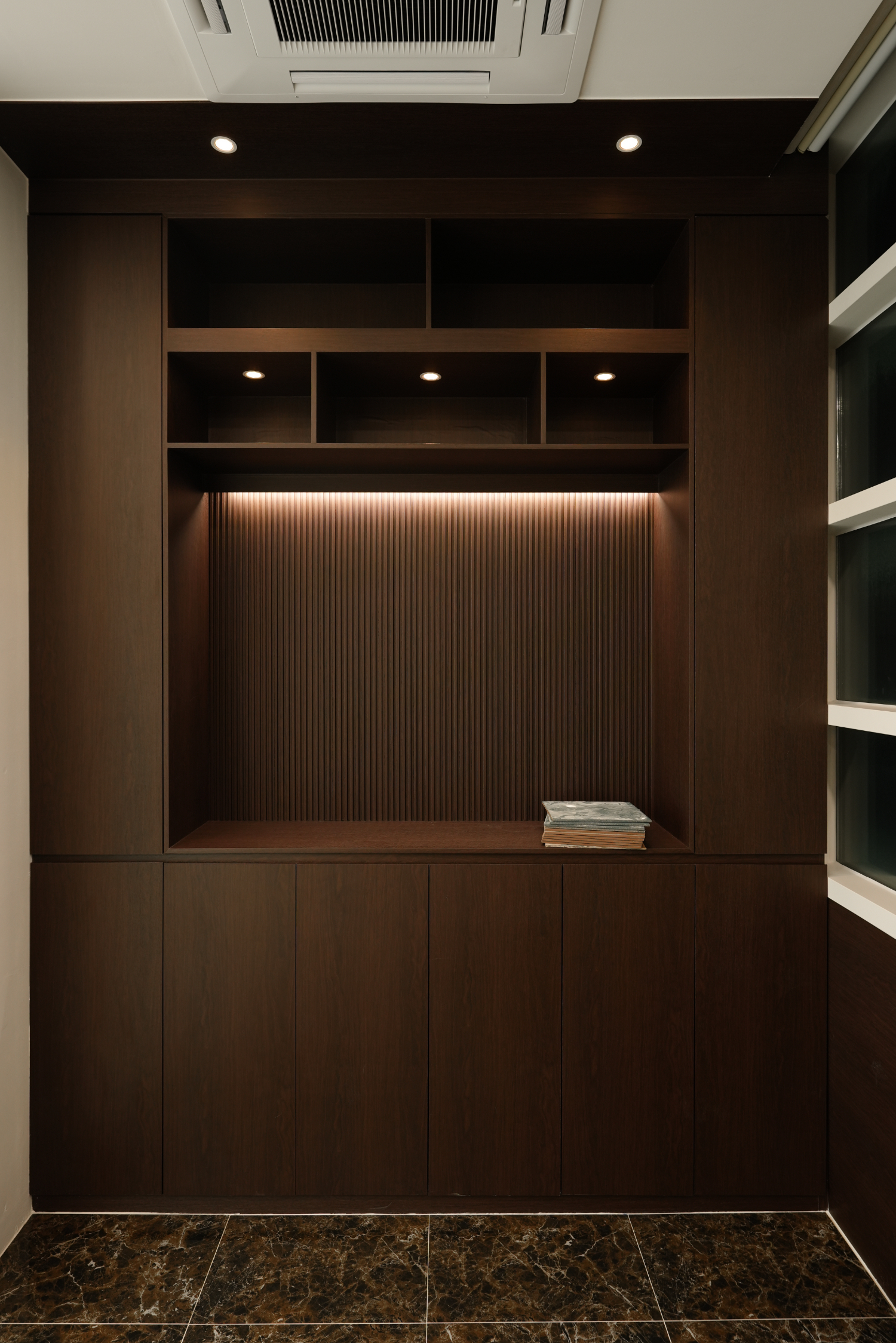 독특한 디자인 아트월로 만들어진 벽은 곳곳에 단차를 두고 조명이 매립되어서 4차원인듯한 느낌을 주었습니다. 어디 하나도 지루하지 않게끔 만들려는 916디자인의 노력이 들어간 모습입니다.