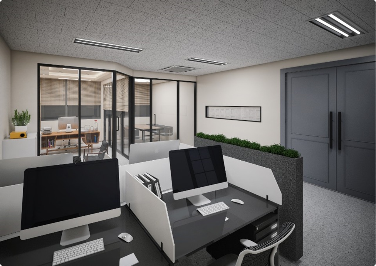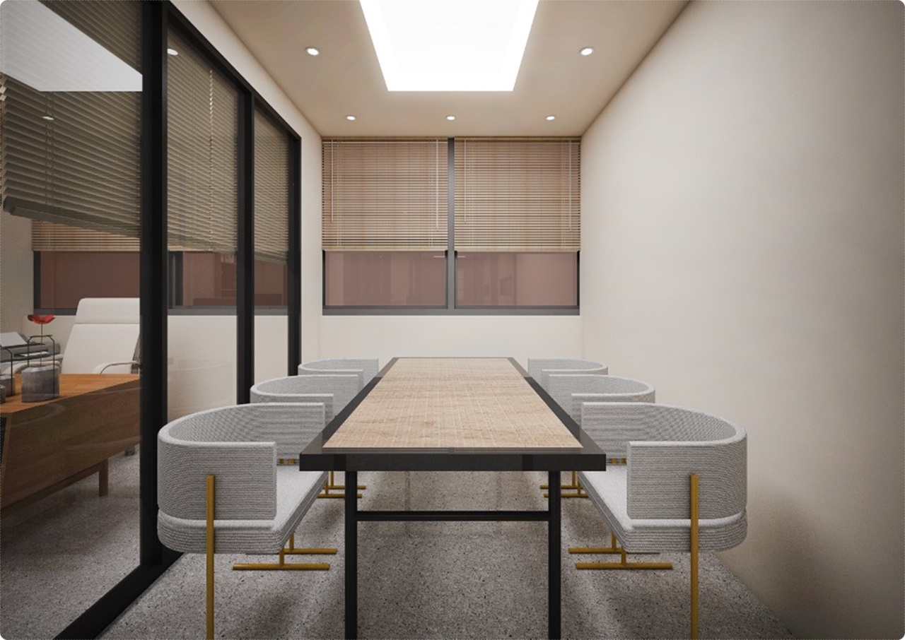 개인 공간은 따뜻하고 아늑한 원목을 적용하고 회의실은 따뜻하면서도 차분한 분위기를 조성할 수 있는 베이지와 그레이톤을 믹스앤매치했으며 철제 프레임이 세련된 긴 테이블을 배치해 모던한 분위기를 더했습니다. 업무 공간은 군더더기 없이 컴팩트하게 계획해 낭비되는 공간이 없도록 디자인해 10평 20평대의 좁은 공간을 효율적으로 사용할 수 있도록 최대한 고려했습니다.
