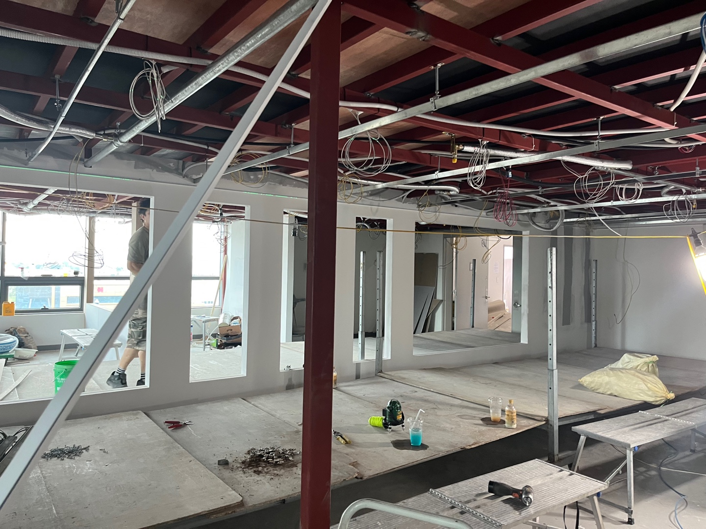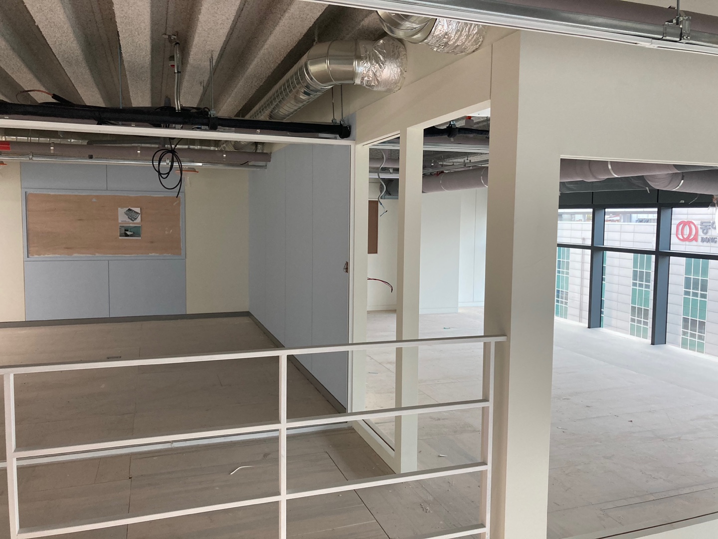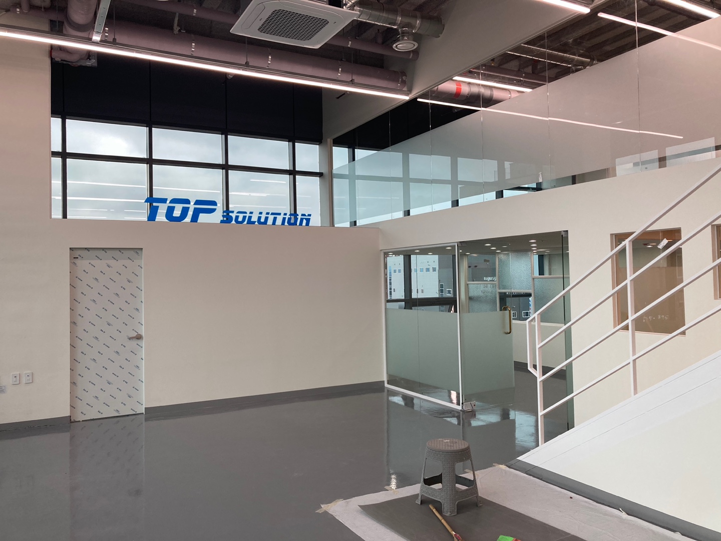 복층으로 공간을 분리하기 위해서는 더욱 높은 기술이 요구 되었습니다. 그리고 2층에서는 아래를 내려다볼 수 있도록 유리로 전면 시공을 하였으며 개방감을 높이기 위해 높은 천고를 백번 활용하였는데요. 중간중간 고객님과의 소통을 통해 진행 상황에 대한 피드백을 이어갔습니다. 그렇게 150평형대의 수원 델타원지식산업센터 복층 사무실 인테리어를 완성하였는데요.