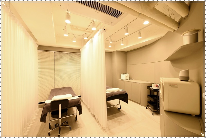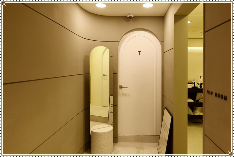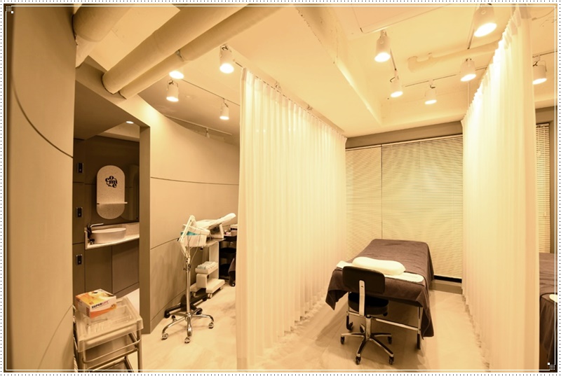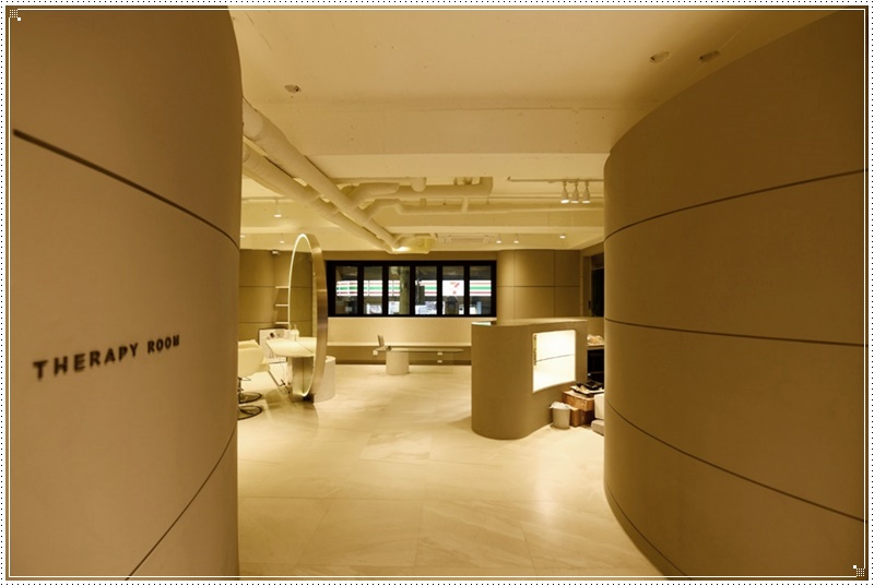 상담공간 같은 경우가 이렇게 유리외벽을 이용해서 공간을 분리한 예시입니다. 다만 상담 공간이란 고객이 본인이 원하는 뷰티 작업을 문의하고 상담하는 곳이기에 너무 투명해서는 공간의 특성을 살릴 수가 없습니다. 그렇기에 커튼을 설치해서 상담공간과 작업공간 사이의 벽을 만들어보았습니다. 상담공간만의 프라이빗을 한층 살린 셈이기도 합니다.
