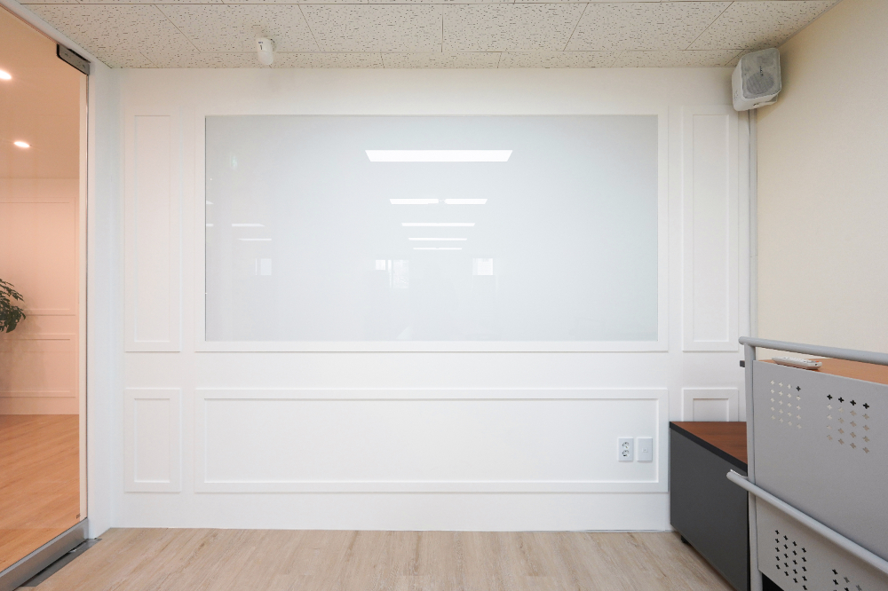 회의실 벽면에는 화이트 보드를 설치해