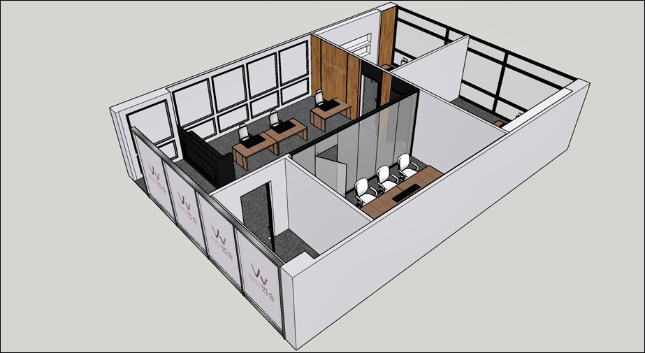 안산 타원타크라3차 안양 평촌k비즈리움 사무실인테리어를 계획 중이신 분들에게 오늘 소개해드릴 심플하지만 고급스러운 현장을 추천드리고 싶네요. 직사각형의 평면에 2개의 사무실과 회의실을 독립형으로 구성하고 사무실과 인포메이션 공간을 배치한 현장입니다. 아이소 도면이지만 마치 평면설계도와 같은 이미지이기 때문에 전체적인 레이아웃과 사이즈 정도는 확인할 수 있지만 디자인과 분위기는 전혀 알 수가 없습니다.