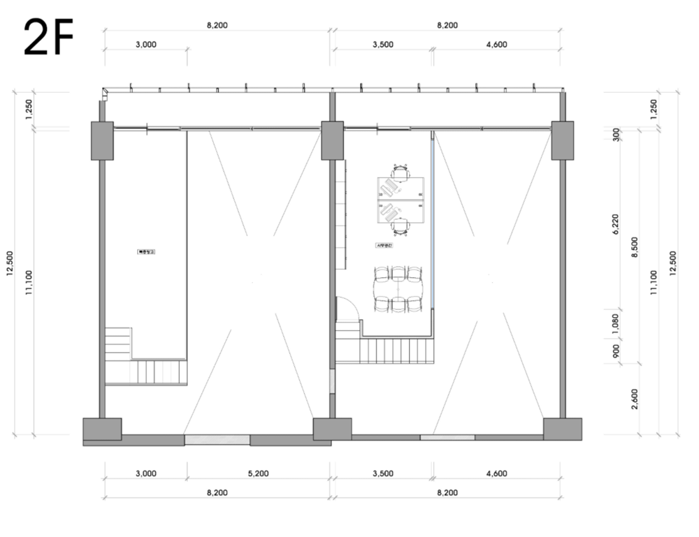 그런 이유로 사무실 인테리어를 할 때는 전문 사이트에서 깔끔한 사례를 확인한 후 문의하고 견적을 의뢰하는 것이 현명한 사무실 인테리어 팁이랍니다. 이번 사무실은 독특한 복층 구조로 아래층에는 사무공간과 회의공간으로 구성해 계획하고 복층에는 대표실과 물품창고를 구성해 계획했습니다.