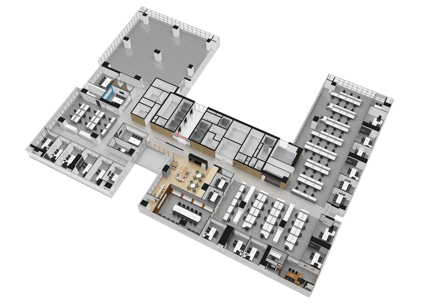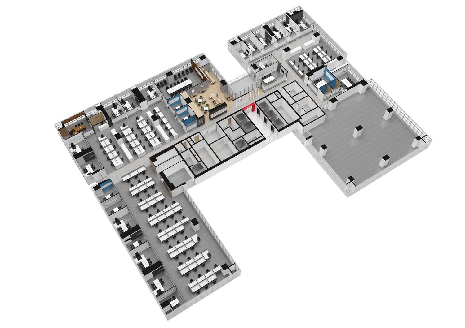 먼저 시흥 온투이노베이션 사옥 3D 설계도&레이아웃입니다. 다인원인 사용하는 대형 평수의 공간인만큼 파트별로 효율적으로 공간을 구성하였습니다. 공간 구성 후 필요와 용도에 맞게 세부적인 디자인을 설계하였습니다.