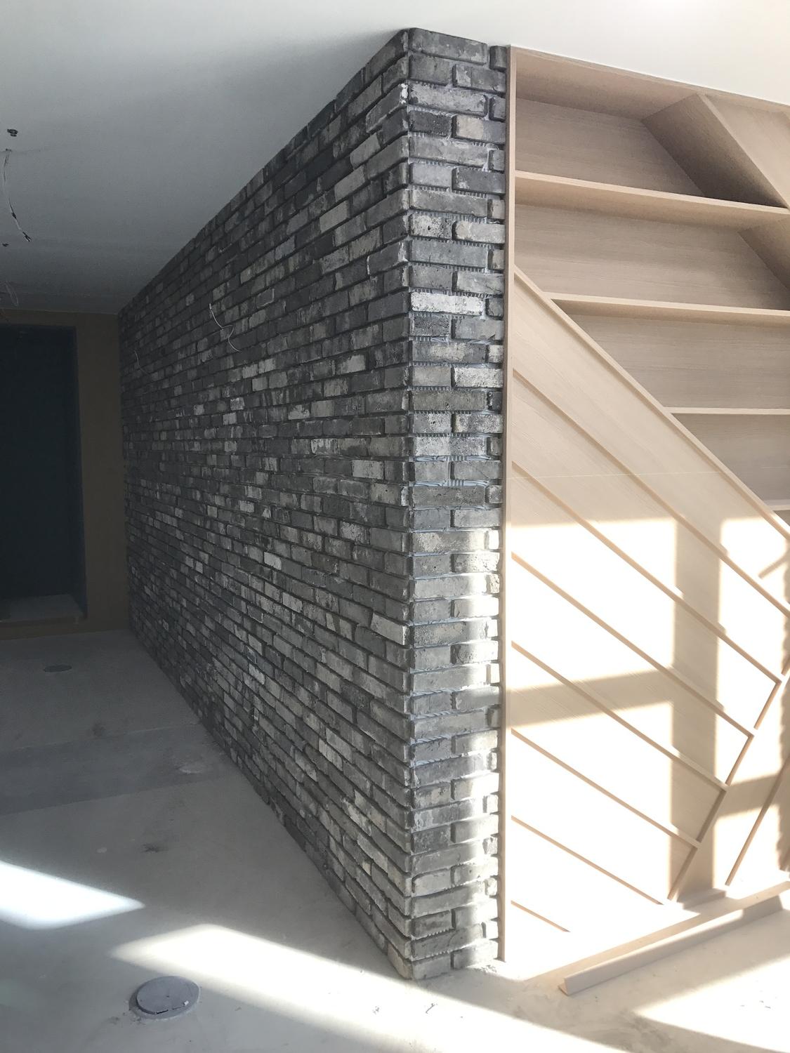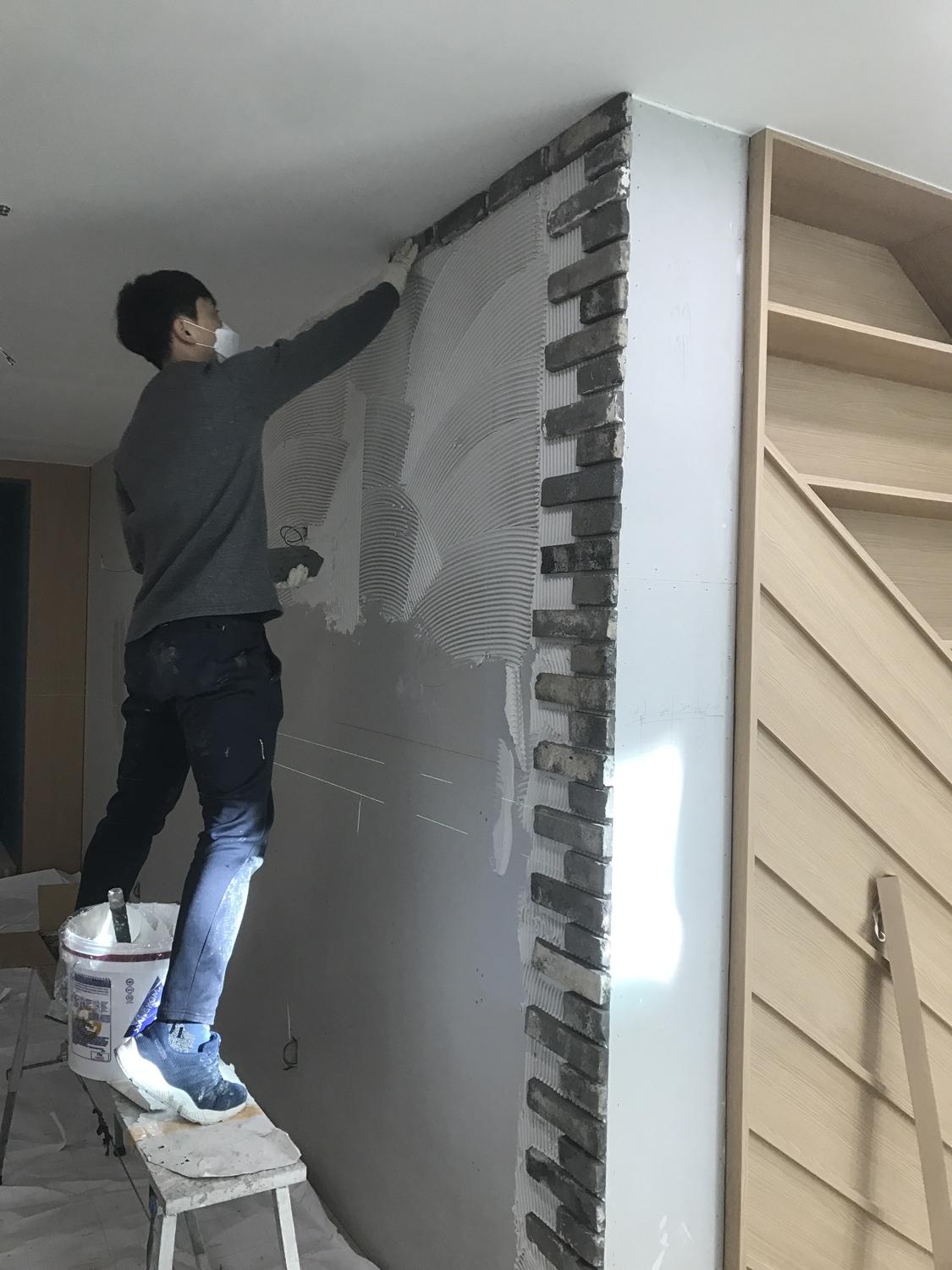 벽면 인테리어 마감 현장을 살펴보면 동일한 간격으로 전문가의 정교한 기술을 확인하실 수 있습니다.벽돌 인테리어로 모던한 분위기가 한층 살아난 것 같지 않나요?
