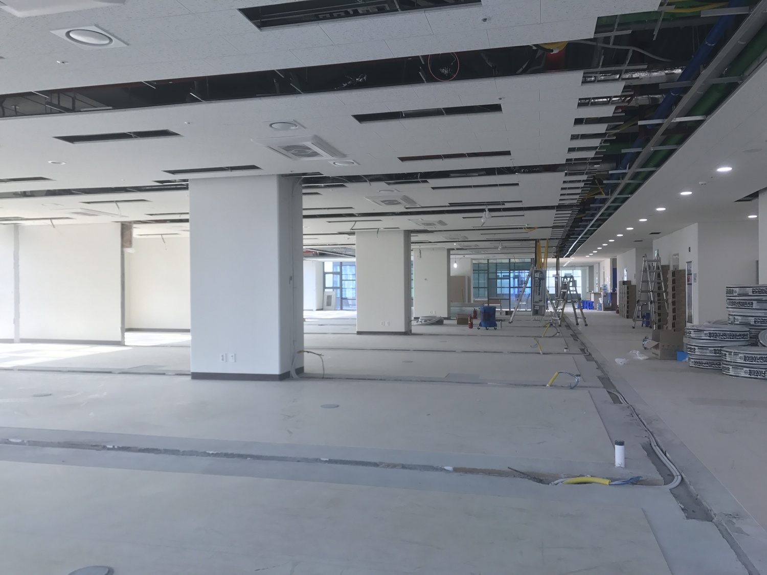 자, 그럼 지금부터 공사 현장을 함께 확인해보겠습니다. 천정 및 전기 공사를 위해 기존 텍스 철거 작업을 진행하였고 사무 업무 공간 외에는 석고보드로 천정을 마감하였습니다.