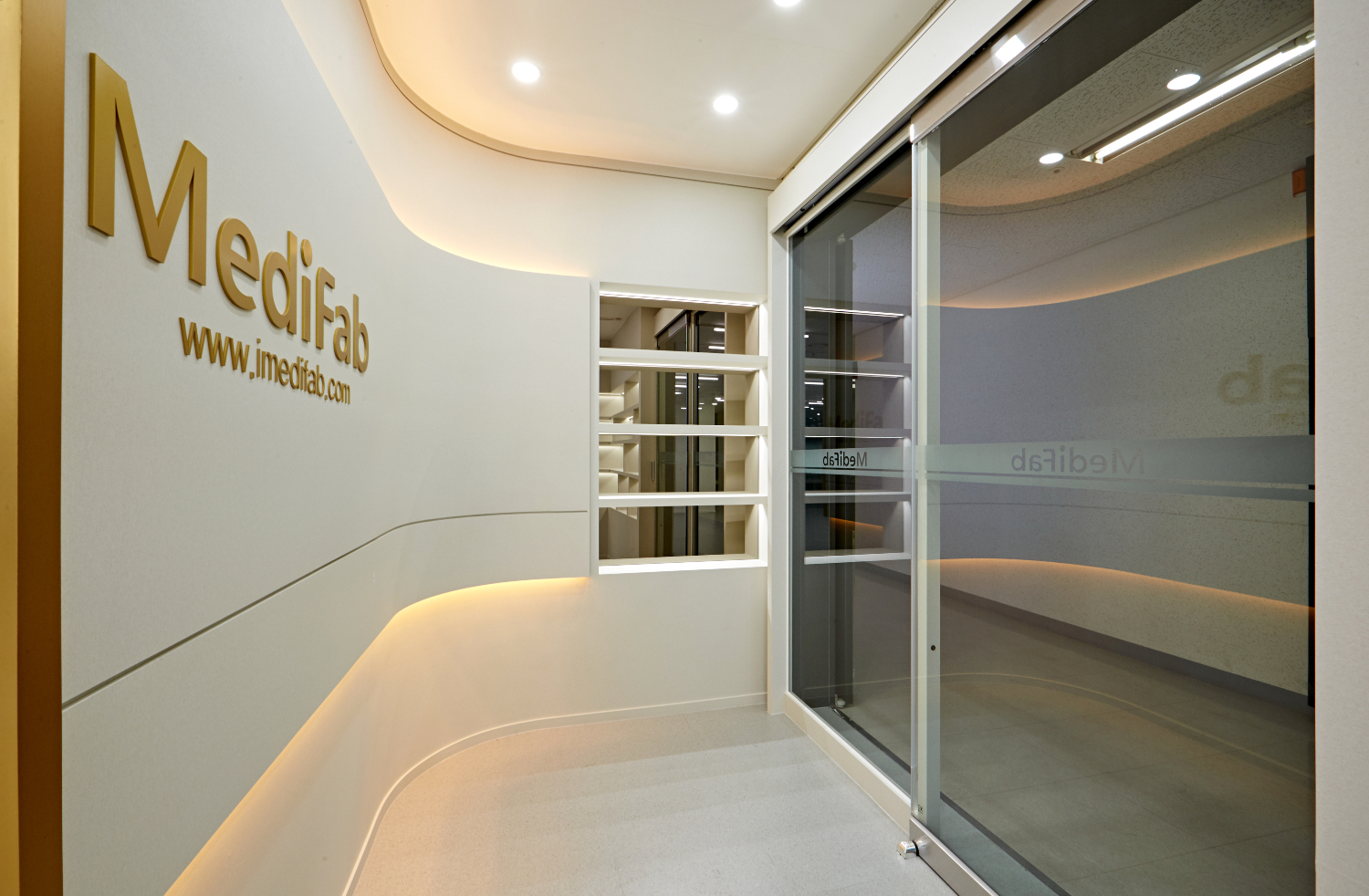 내부로 들어서면 입구와는 다르게 새하얀 조명과 전체적으로 깔끔하고 미니멀한 인테리어가 눈에 들어옵니다. 양천구 화곡 마곡 사무실인테리어로 시공된 이번 현장은 연구실을 보유하고 있는 업체였기에 위생적이면서도 깨끗한 이미지가 생명이었는데요