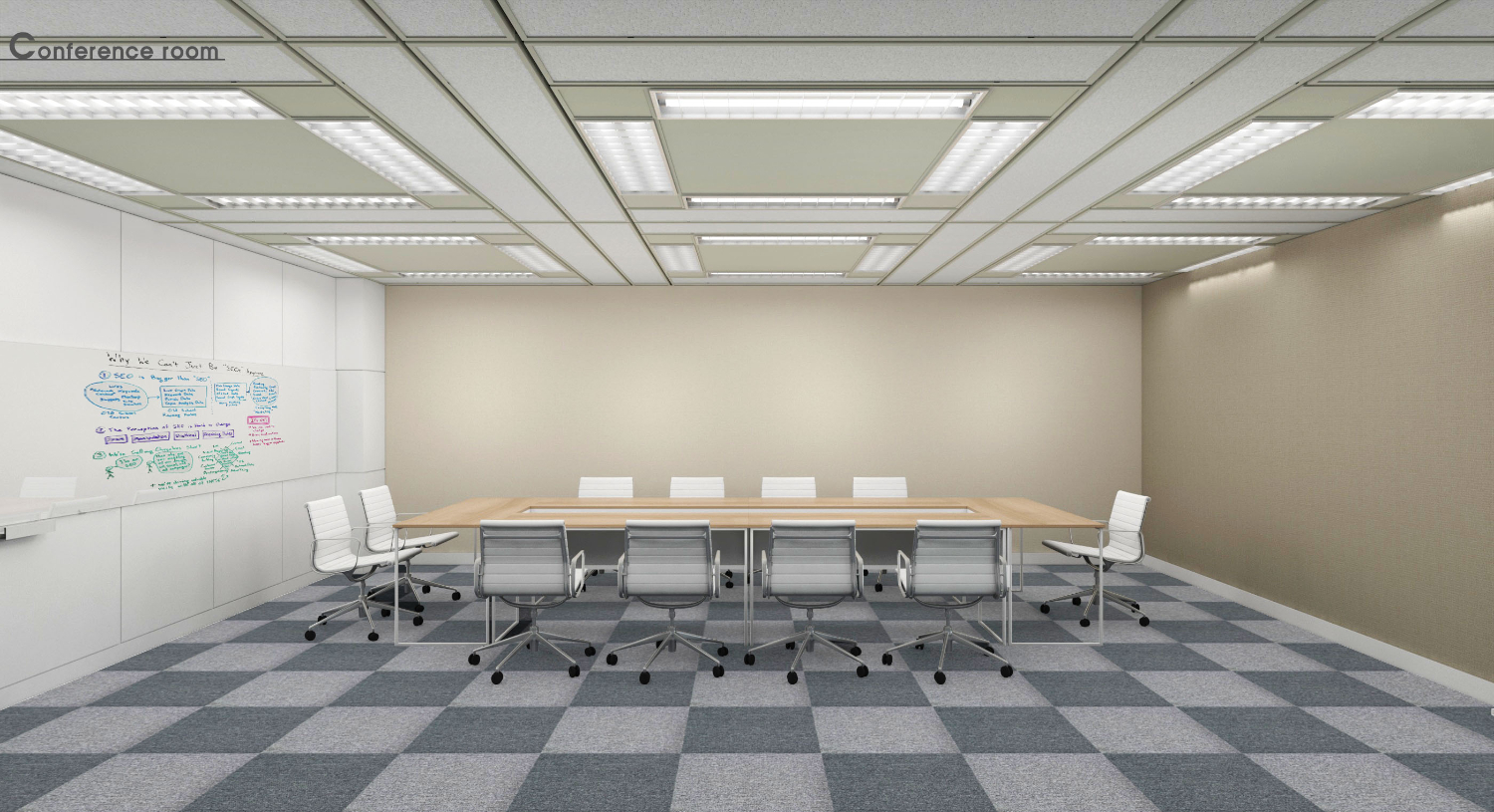 다음은 대회의실입니다. 많은 사람들이 모여서 회사의 중요한 사안을 논의하는 곳이니 다른 곳에 주의를 빼앗기지 않도록 심플하게 디자인 되었습니다. 화이트 벽과 프레임 그리고 회색 바닥이 사무 공간임을 명확하게 보여주고 있습니다.