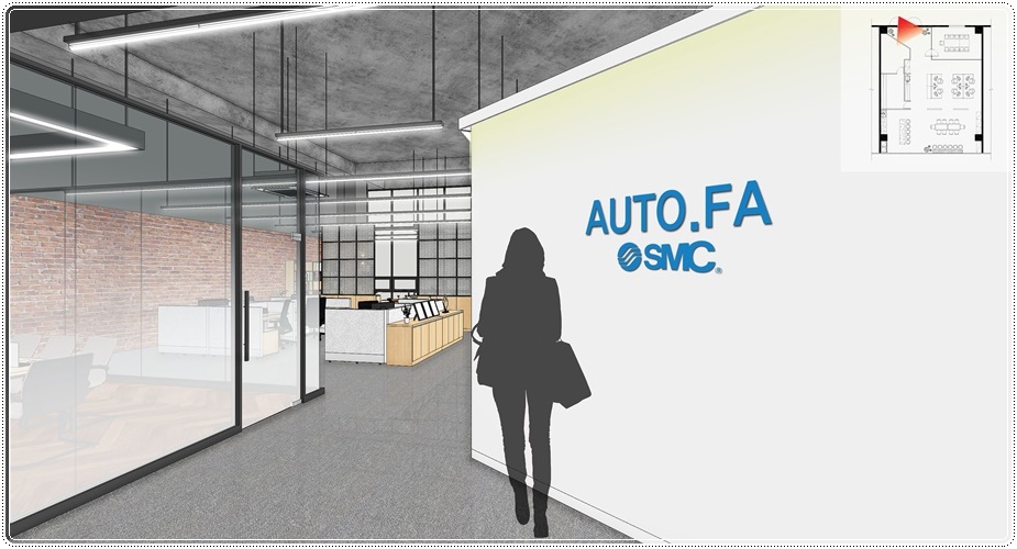 내부의 창고 벽면을 비스듬하게 계획해 파사드로 활용했고 거기에 회사명과 로고를 사인물로 계획해 인지성과 정체성을 높였습니다. 내부로 들어가 벽면을 따라 진입하면 회의실을 가장 먼저 만나게 되는데요, 최근에는 기업의 보안이 중요하게 여겨지면서 방문객의 파악과 동선 제한이 중요해졌습니다. 그러한 이유로 입구측에 회의실을 배치하는 회사들이 늘었고 이는 방문객의 동선을 최소화하고 직원 동선과의 혼선을 막을 수 있다는 점에서 좋은 호응을 보이고 있습니다.