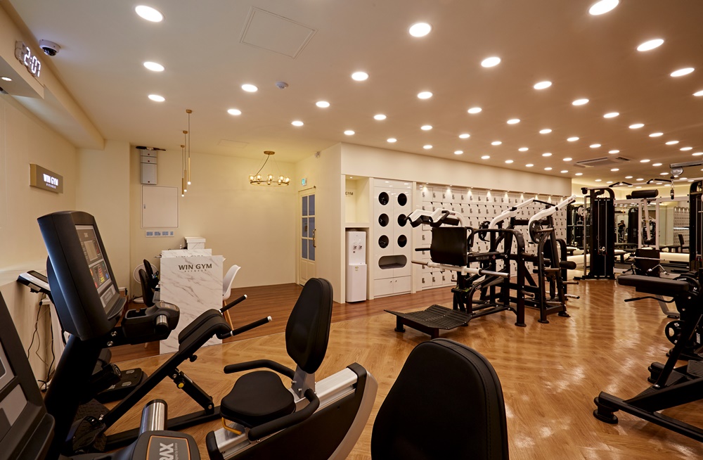 전체적으로 화이트로 마감을 했지만 우드톤, 크림톤, 웜톤 등이 어우러져 화사하면서 따듯한 느낌이 들어 편안한 마음으로 운동을 할 수 있을 것 같습니다.