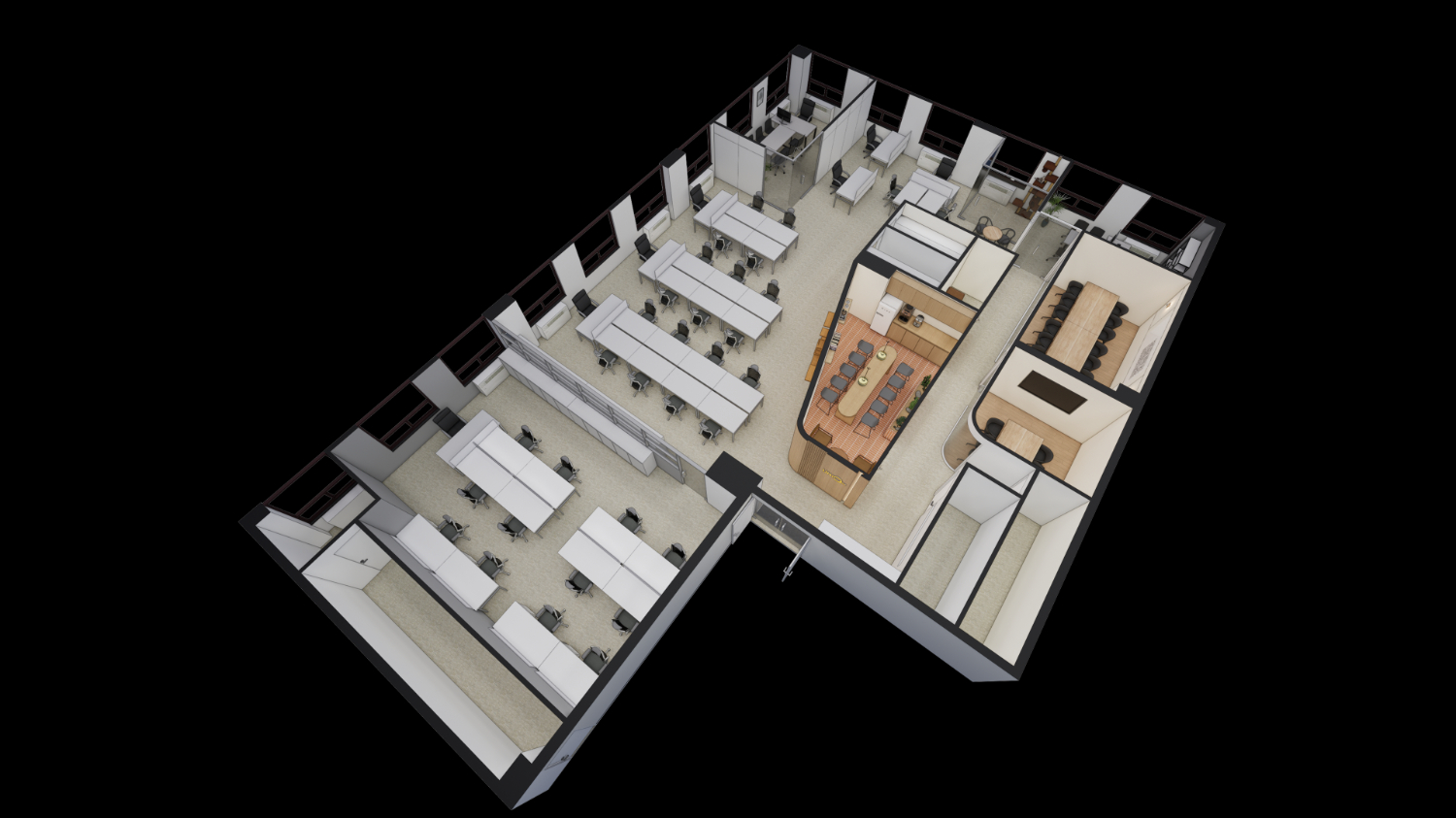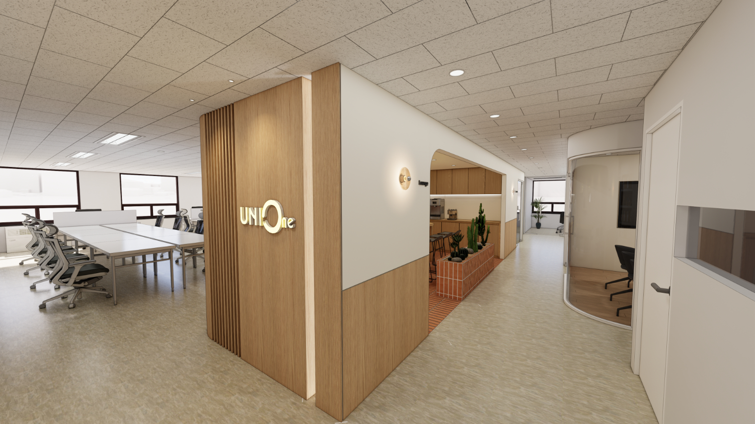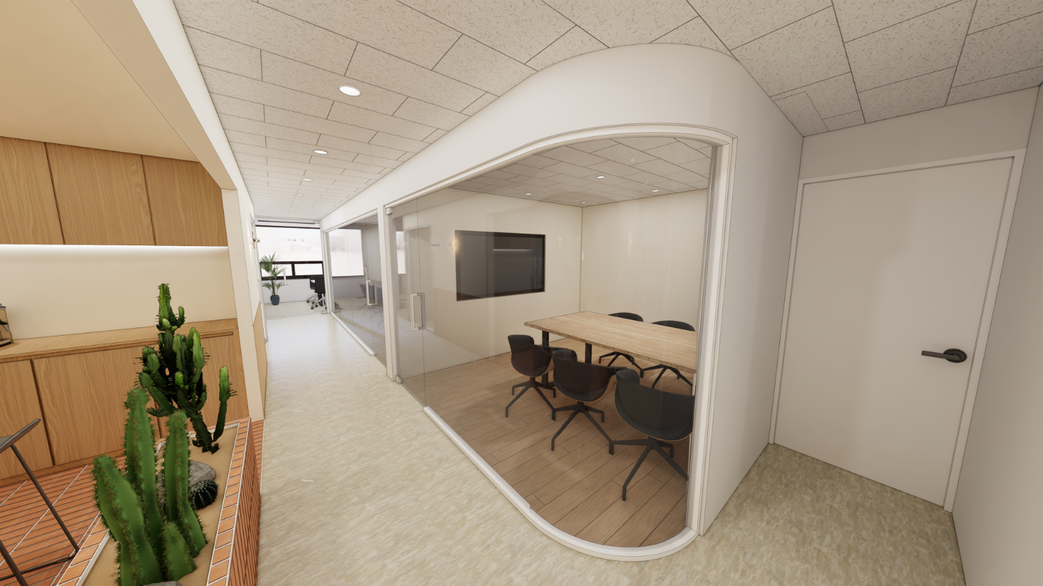 반대편에는 복도를 따라 라운지와 회의실, 업무 공간 등이 구성되어 있습니다. 3D디자인처럼 라운지 입구를 오픈형으로
