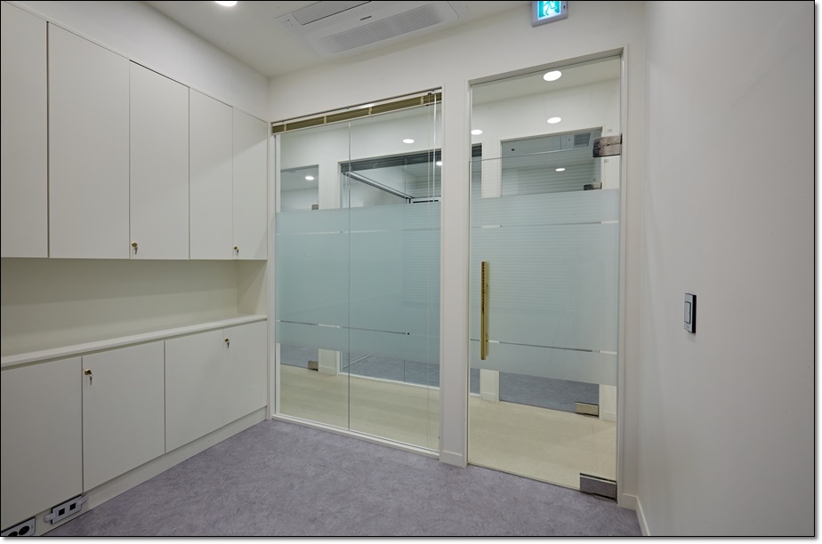 독립사무실, 임원실, 대표실로 사용할 수 있는 개별 사무실입니다. 유리 가벽을 적용해 개방성을 주었고 내부 인테리어는 아이보리 컬러로 통일성을 이루게 했으며 각 공간에 맞는 맞춤 수납장을 시공해 편리하게 사용할 수 있도록 해드렸습니다.