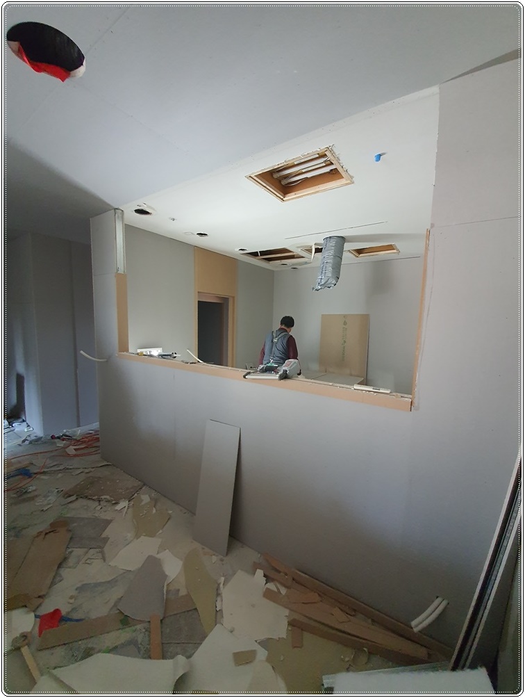 이런 과정은 최종 시안 확정을 앞당기는 중요한 단계로 916디자인은 평면설계와 함께 3D 디자인설계를 무료로 제공해드리고 있습니다. 최종 시안을 토대로 작업을 하면 배선, 배관, 공조 등을 효율적으로 정리할 수 있고 목공 작업을 통해 레이아웃을 완벽하게 구현할 수 있습니다. 특히, 학원이다 보니 소음을 차단할 수 있는 방음재 작업을 공간마다 적당한 수준으로 시공하는 것이 중요했답니다.
