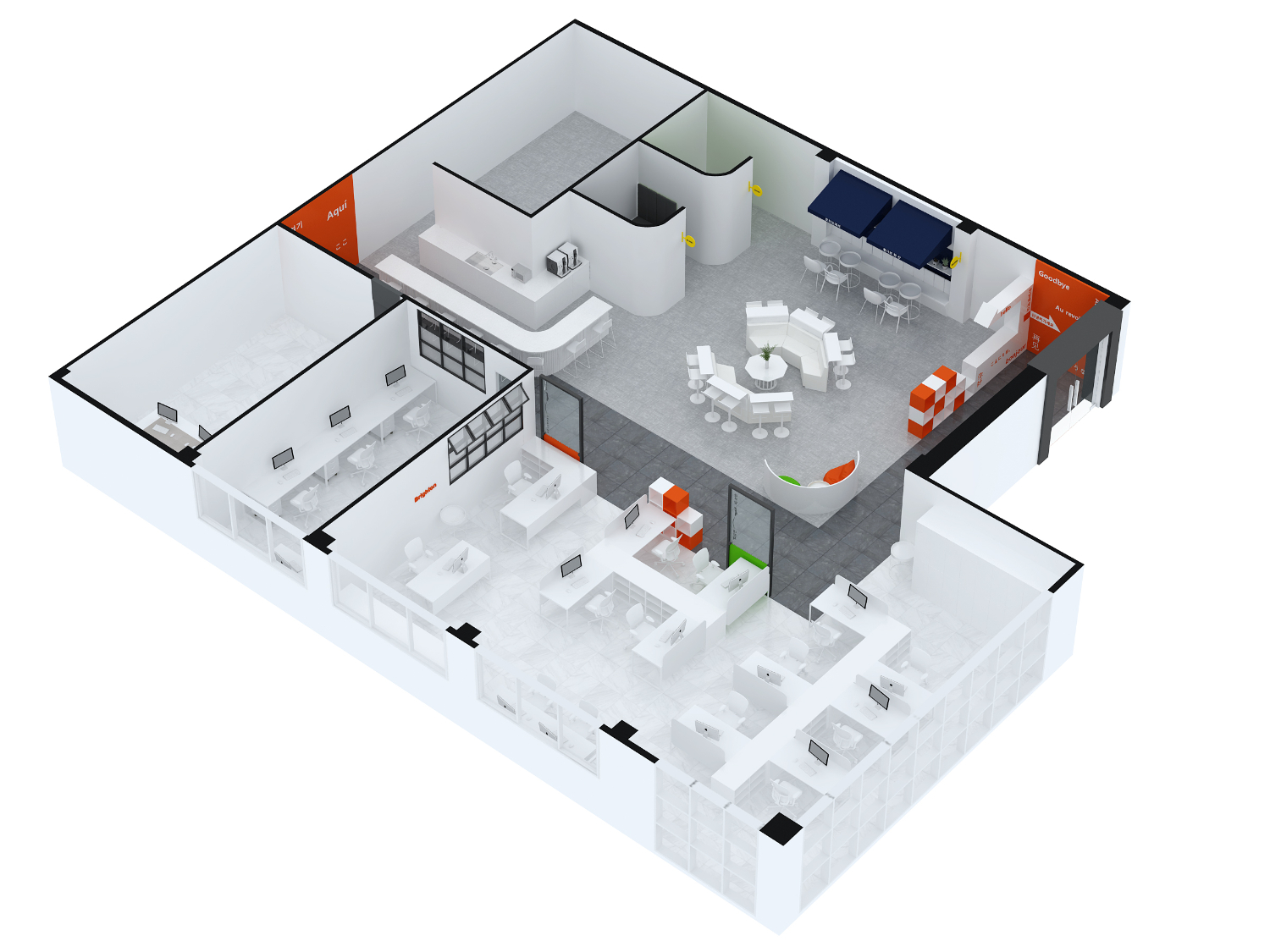 카페테리아는 가구 배치도 많고 여러 컬러가