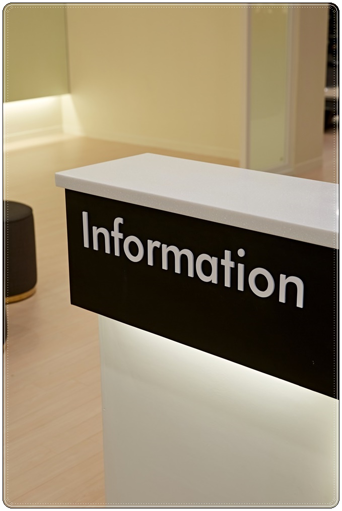 외부 파사드부터 살펴보겠습니다. 화이트를 베이스로 골드 컬러와 유리를 매치해 고급스러운 디자인을 연출했습니다. 화이트 벽면은 웨인스코팅을 시공해 유럽 감성의 센터 로고와 잘 어울리도록 했고 유리 도어를 시공해 디자인적으로 세련되면서 내부 인테리어를 차경으로 활용할 수 있도록 했습니다.