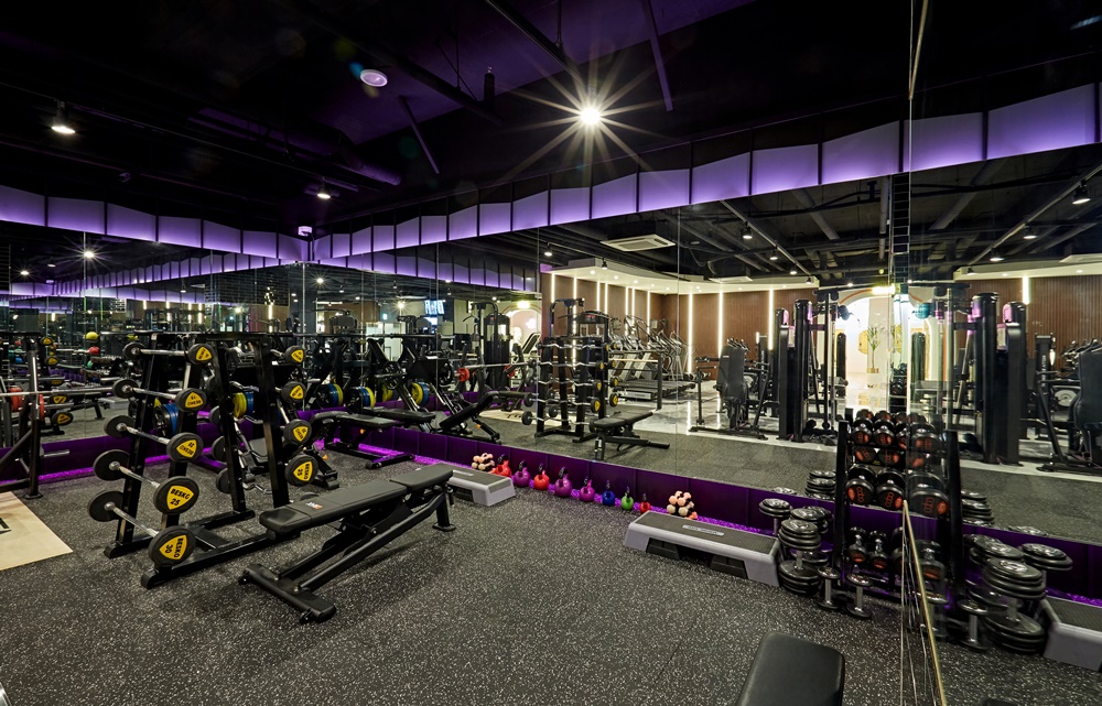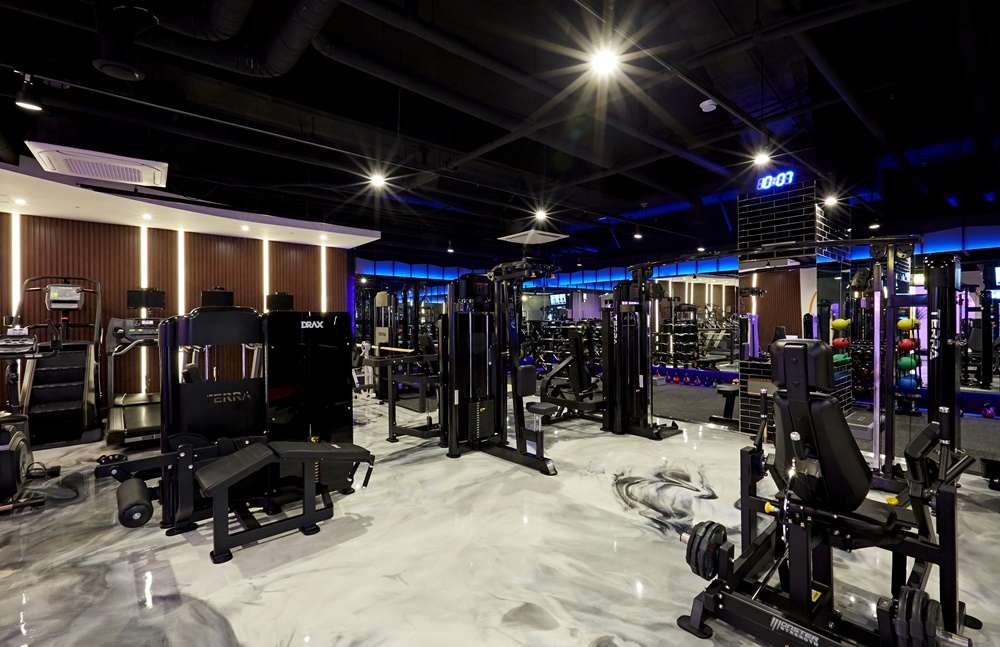 헬스는 동작이 크고 활동 반경이 넓으며 역동적인 운동이 많아 좀 더 집중할 수 있는 분위기로 만드는 것이 중요해 어두운 분위기에서 스팟 조명을 활용하도록 했습니다. 대신, 벽면을 따라 설치된 거울 윗부분에 색이 변하는 네온 조명을 넣어 활발하고 역동적인 분위기를 만들었으며 무게 운동 중심으로 이뤄지는 프이웨이팅존에는 바닥 매트를 깔아 소음과 충격을 흡수해 운동 효율과 효과를 높이도록 했습니다.