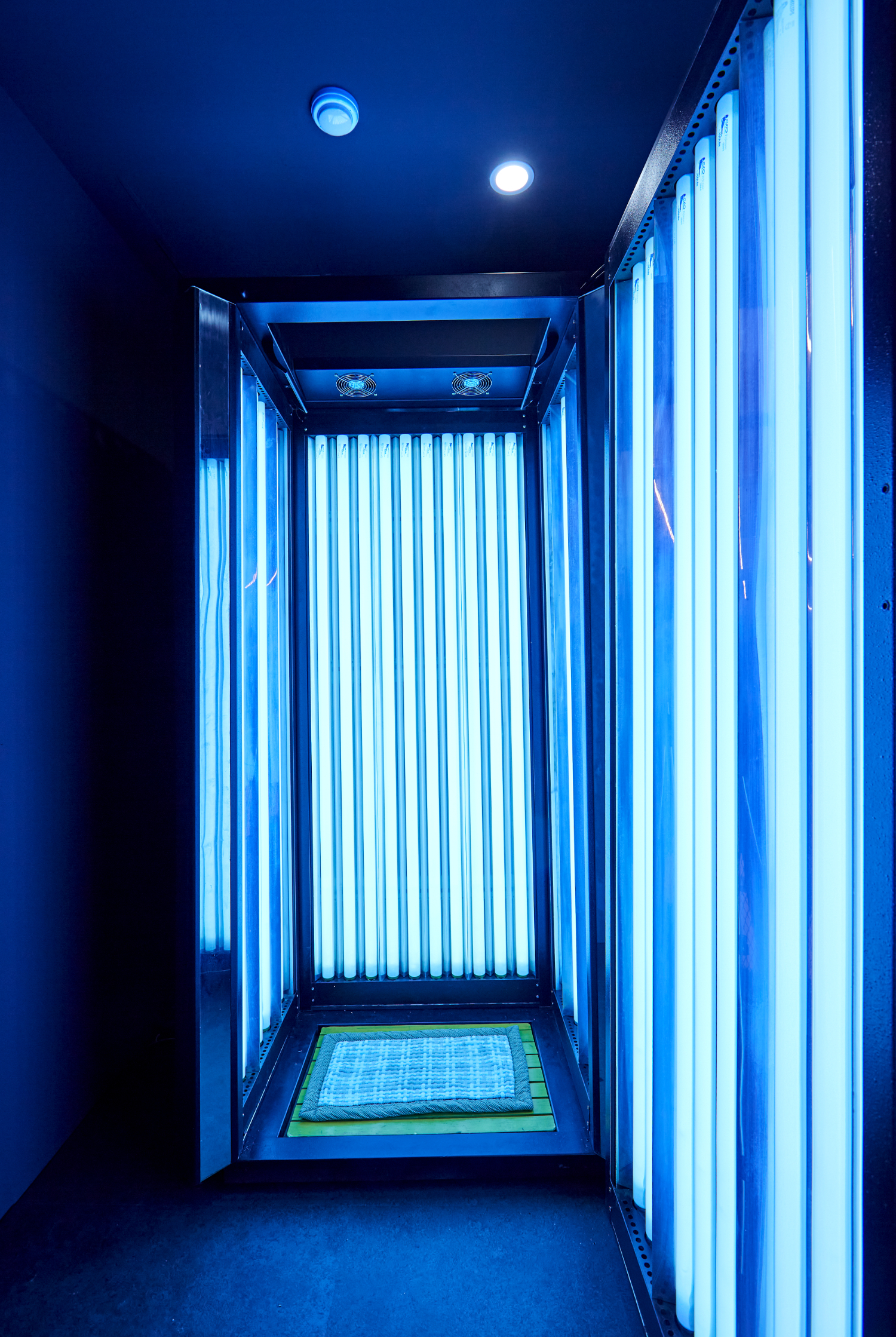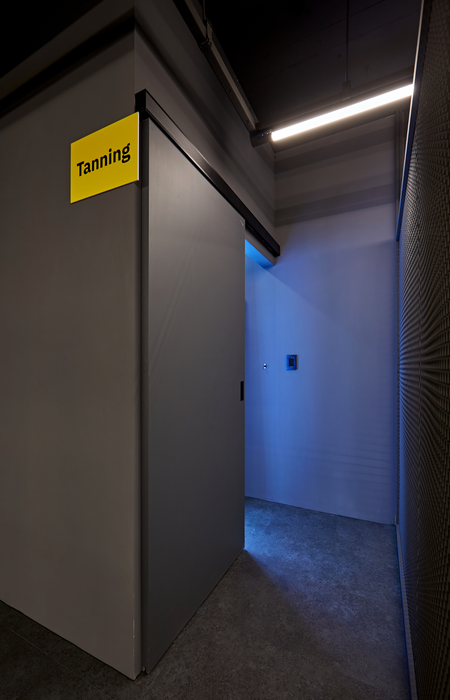 마지막으로 청주 세종 대전 헬스장인테리어의 승부수 포인트가 있다면 바로 태닝실인데요. 별도의 태닝샵을 가지 않고 한 번에 해결할 수 있도록 마련되어 있습니다. 내부는 한 사람이 태닝을 진행하기에 충분한 여유 공간을 자랑하고 있으며 히든공간인만큼 프라이빗하게 즐기실 수 있습니다.