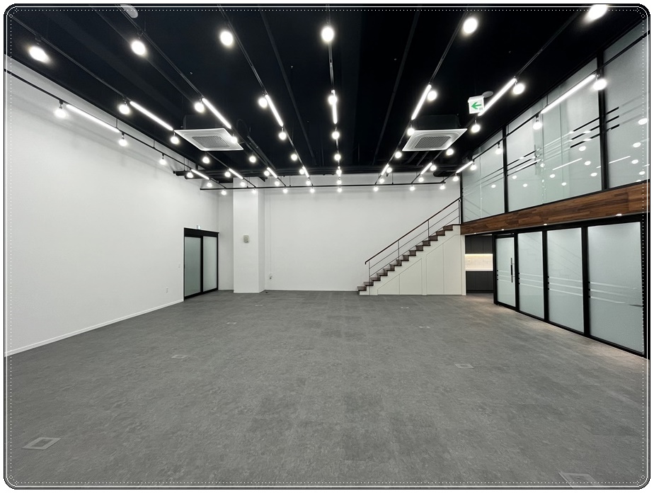단층 부분은 통합형 사무실로 사용할 수 있도록 했는데요, 통합형 사무실은 구성원간의 소통, 교류, 피드백, 공유 등에 유리해 업무 효율을 높이죠. 또한, 넓은 공간은 창조성을 높이는 효과도 있다고 해서 최근 많은 사무실이 이렇게 통합형으로 구성을 하고 있습니다.